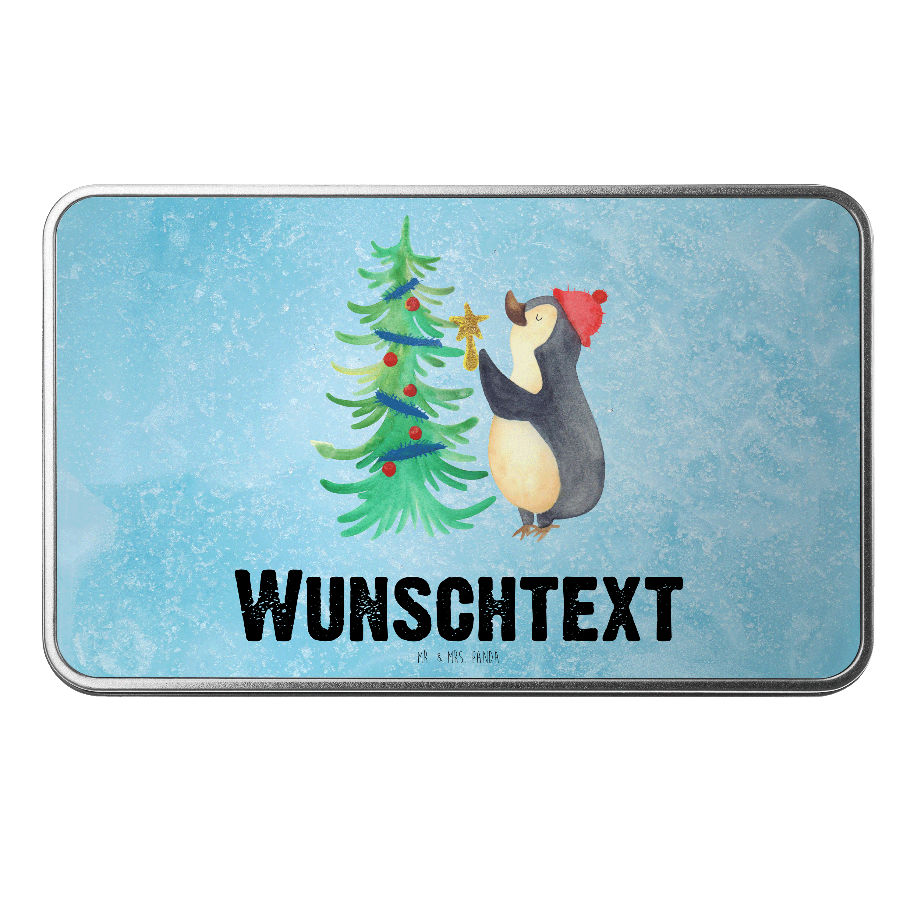 Personalisierte Metalldose Pinguin Weihnachtsbaum