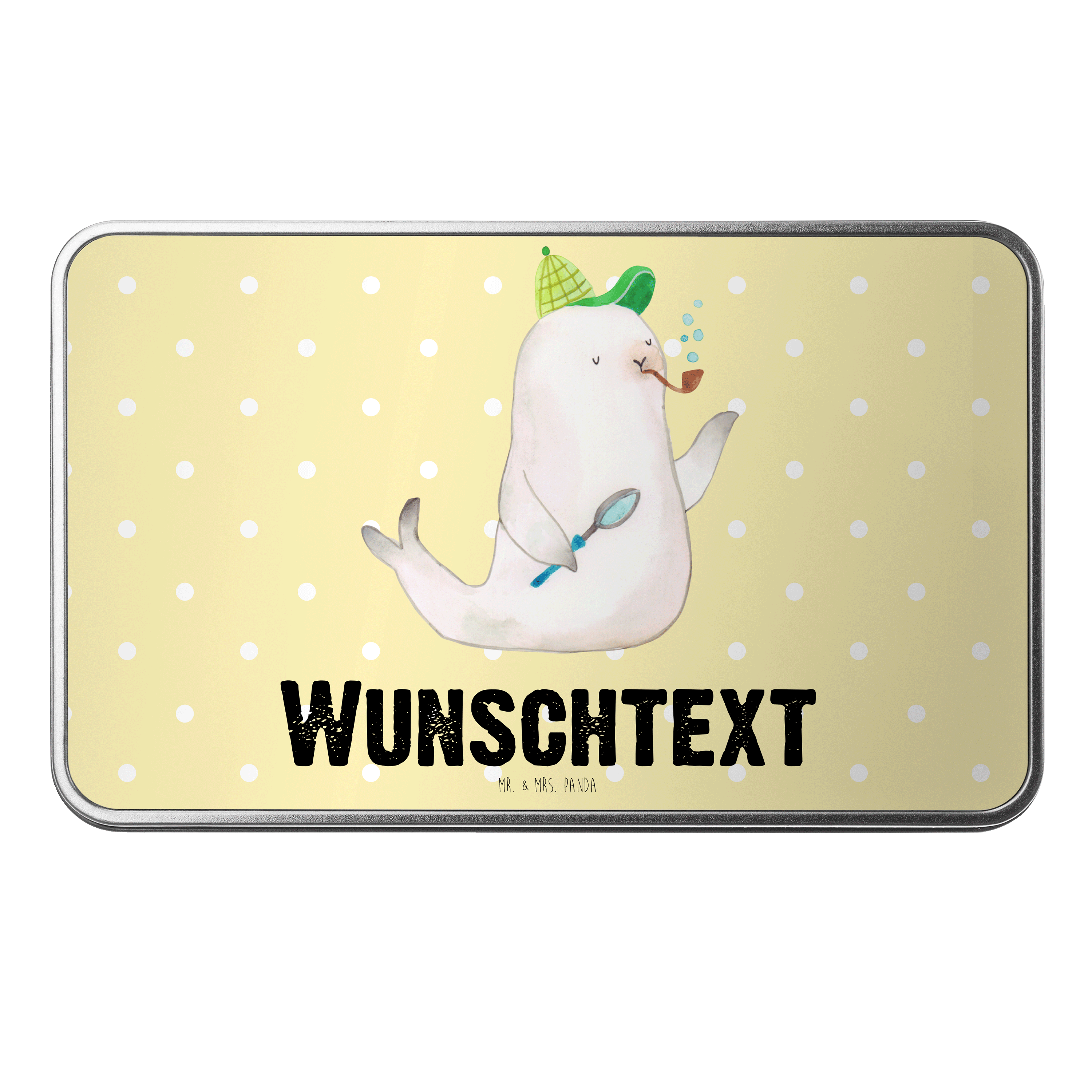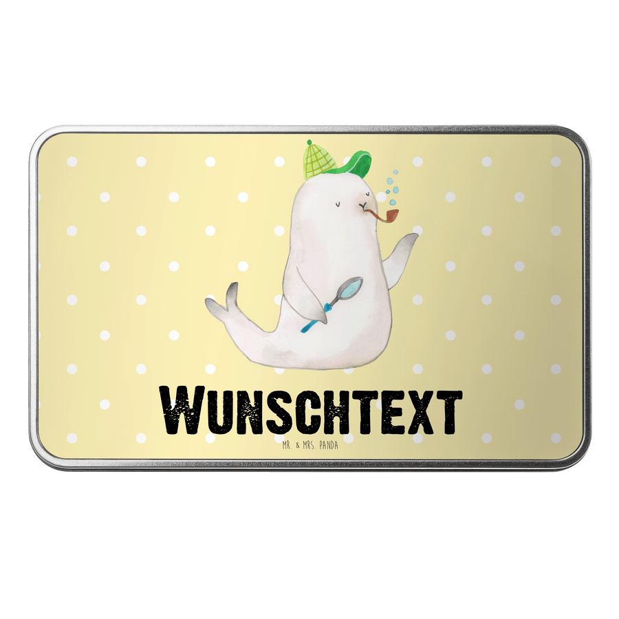 Personalisierte Metalldose Robbe Sherlock Personalisierte Metalldose, Dose mit Namen, Namensdose, Kiste mit Namen, Namenskiste, Tiermotive, Gute Laune, lustige Sprüche, Tiere