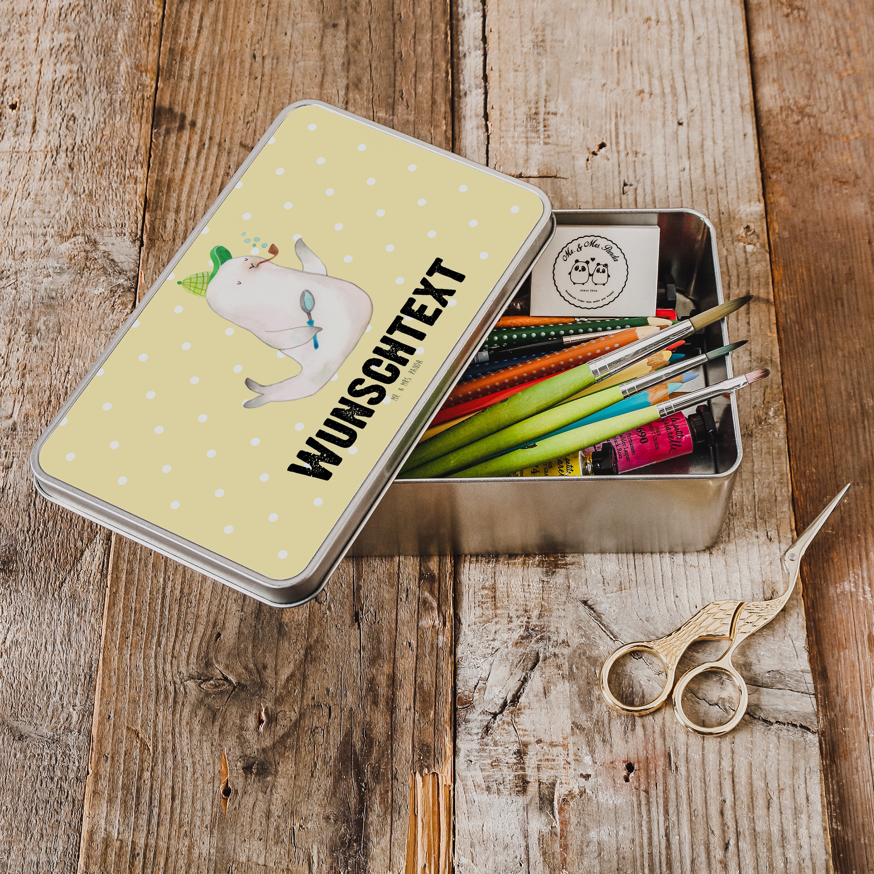Diese wunderschöne personalisierte Dose mit Namen oder Wunschtext von Mr. & Mrs. Panda ist wirklich etwas ganz Besonderes - sie ist stabil, sehr hochwertig und mit einer exklusiv bedruckten Abdeckung ausgestattet. Die Dose kann als Keksdose für die selbstgebackenen Plätzchen während der Weihnachtszeit dienen, als Aufbewahrungsbox für schöne Erinnerungsstücke, als Vorratsdose für Lebensmittel oder als nachhaltige Geschenkbox zum Verschenken verwendet werden.Bitte beachte, dass personalisierte Artikel vom Umtausch ausgeschlossen sind.
