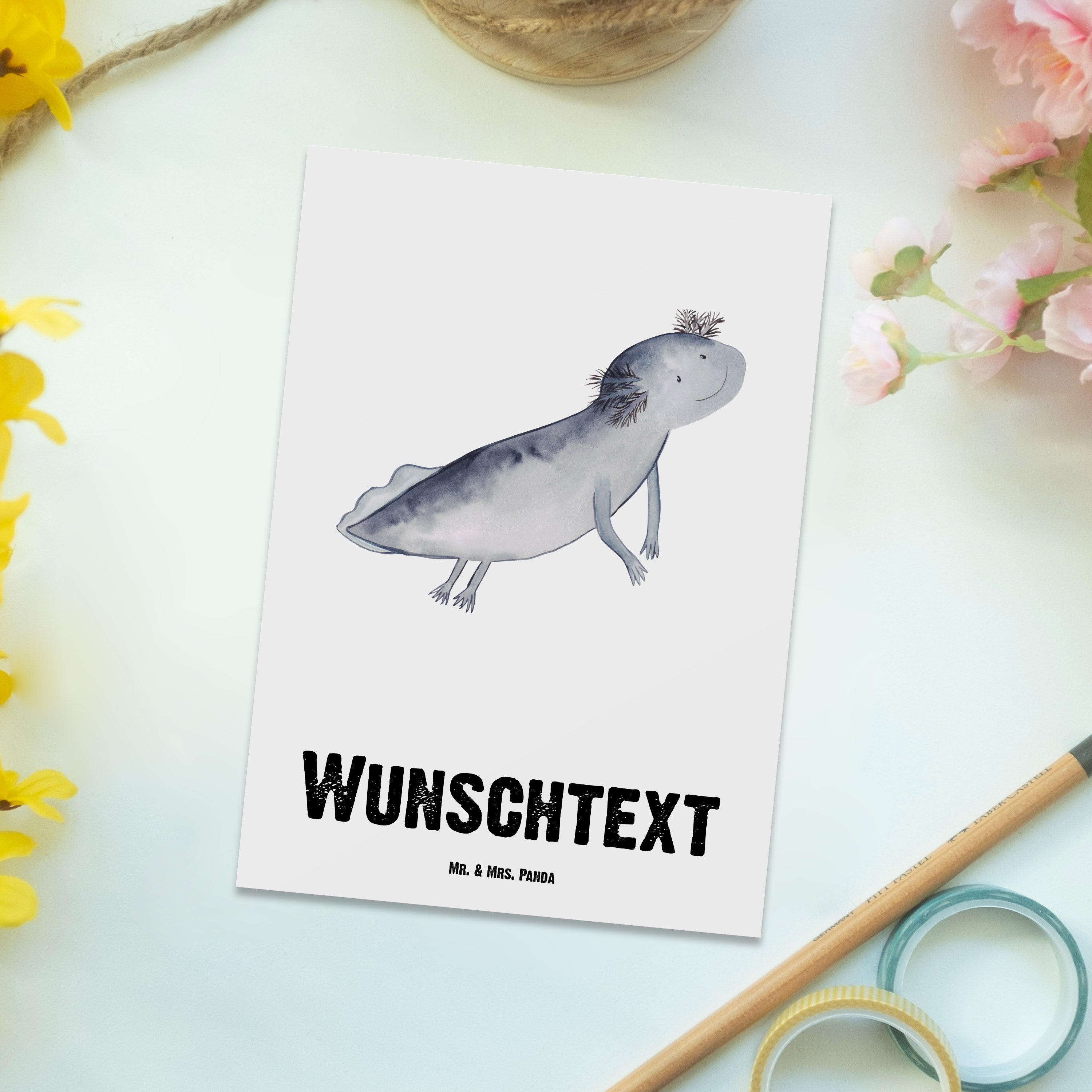 Personalisierte Postkarte Axolotl schwimmt