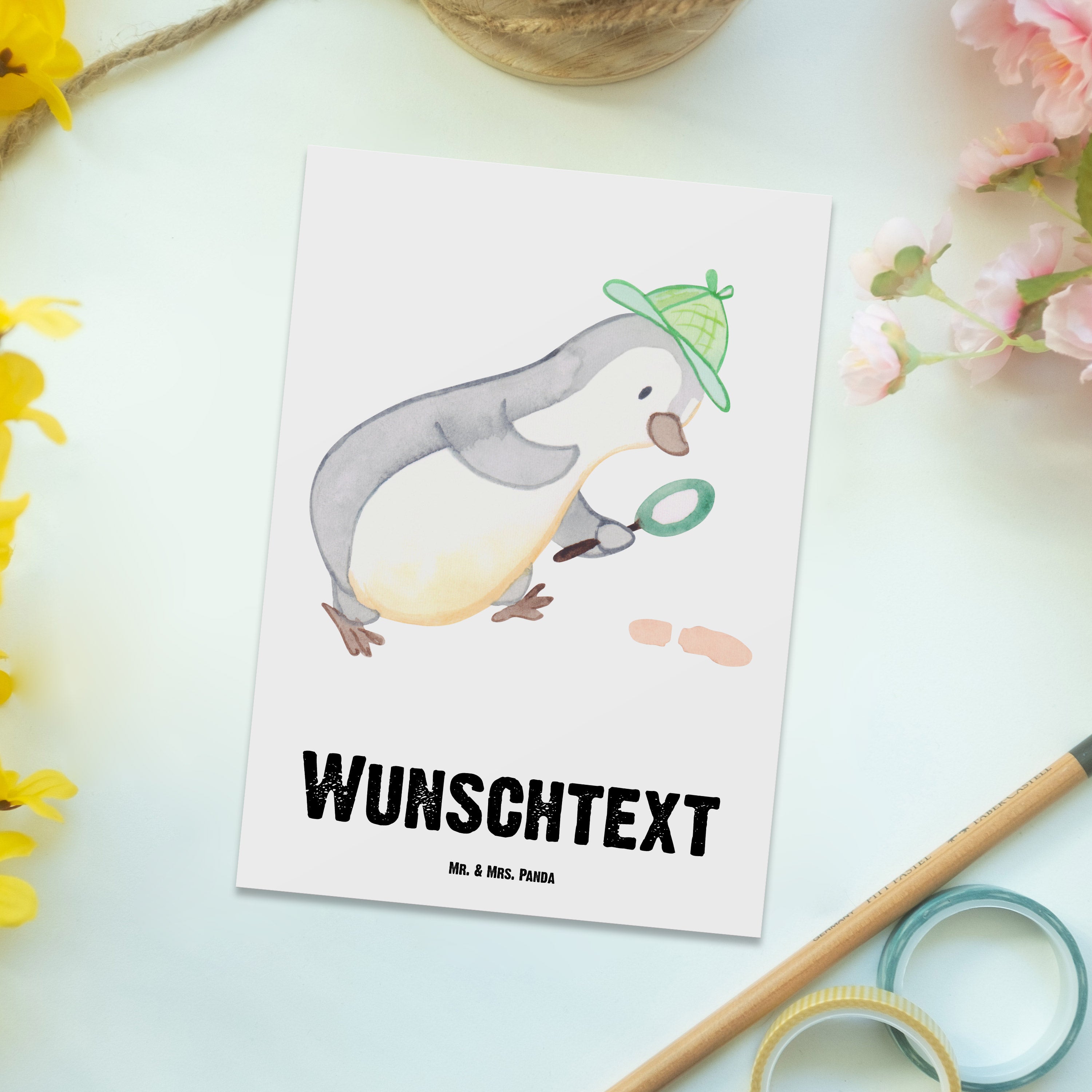 Personalisierte Postkarte Detektiv mit Herz Postkarte mit Namen, Postkarte bedrucken, Postkarte mit Wunschtext, Postkarte personalisierbar, Geschenkkarte mit Namen, Grußkarte mit Namen, Karte mit Namen, Einladung mit Namen, Ansichtskarte mit Namen, Geschenkkarte mit Wunschtext, Grußkarte mit Wunschtext, Karte mit Wunschtext, Einladung mit Wunschtext, Ansichtskarte mit Wunschtext, Beruf, Ausbildung, Jubiläum, Abschied, Rente, Kollege, Kollegin, Geschenk, Schenken, Arbeitskollege, Mitarbeiter, Firma, Danke, Dankeschön, Detektiv, Ermittler, Agent, Privatdetektei, Berufsdetektiv, Wirtschaftsdetektei, Detektivausbildung, Spurensuche