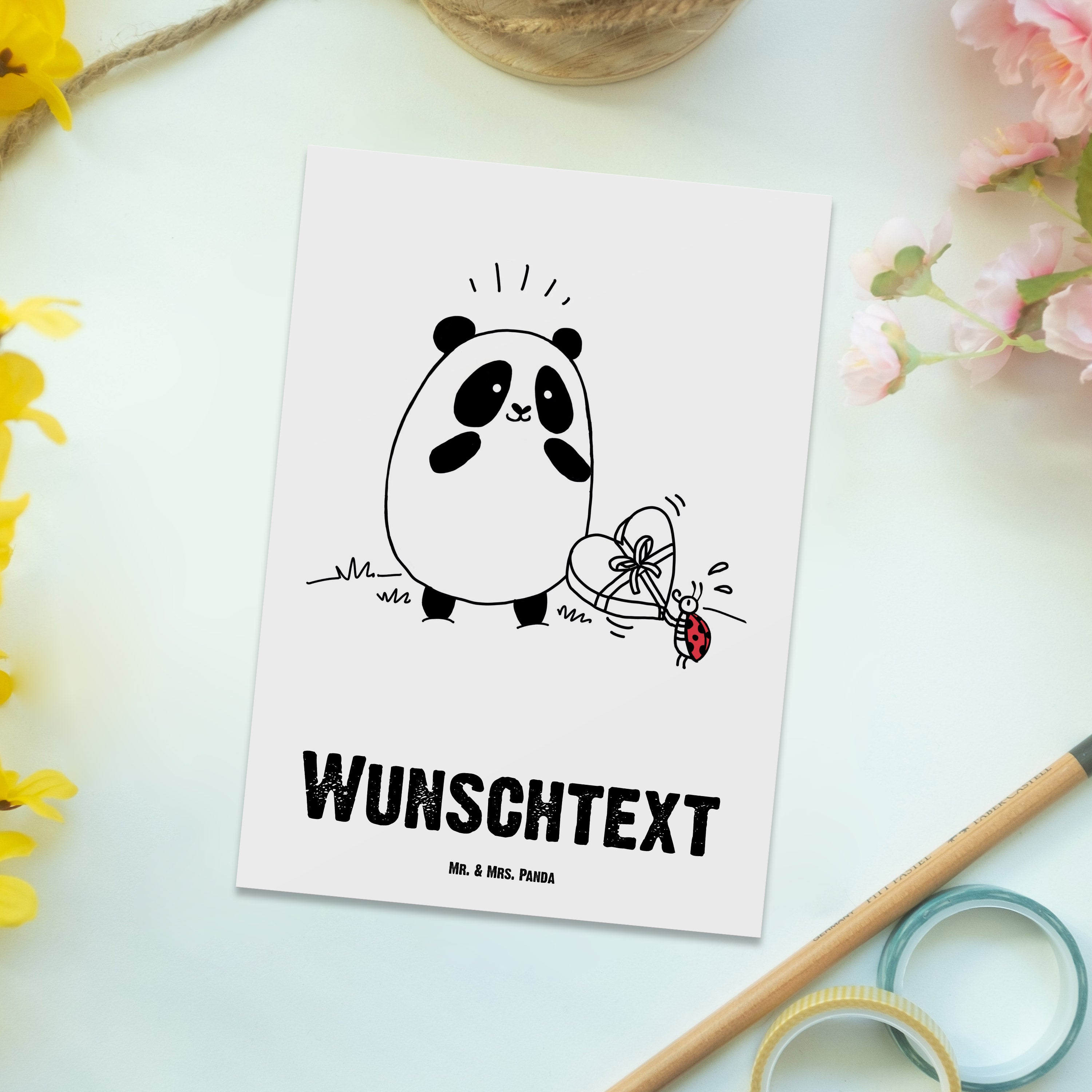 Die Mr und Mrs Panda Postkarten haben das Standard Postkarten Maß und sind auf der Rückseite blanko, damit du viel freien Platz für deine kreativen Texte und Zeichnungen hast. Alle Karten werden mit sehr hochwertigen Tinten gedruckt und sind 40 Jahre UV-Lichtbeständig. Sie sind perfekt geeignet zum Geburtstag, zur Hochzeit, zur Taufe oder auch zu jedem anderen Anlass. Und können deine Wände ein wenig bunter und lebensfroher machen!