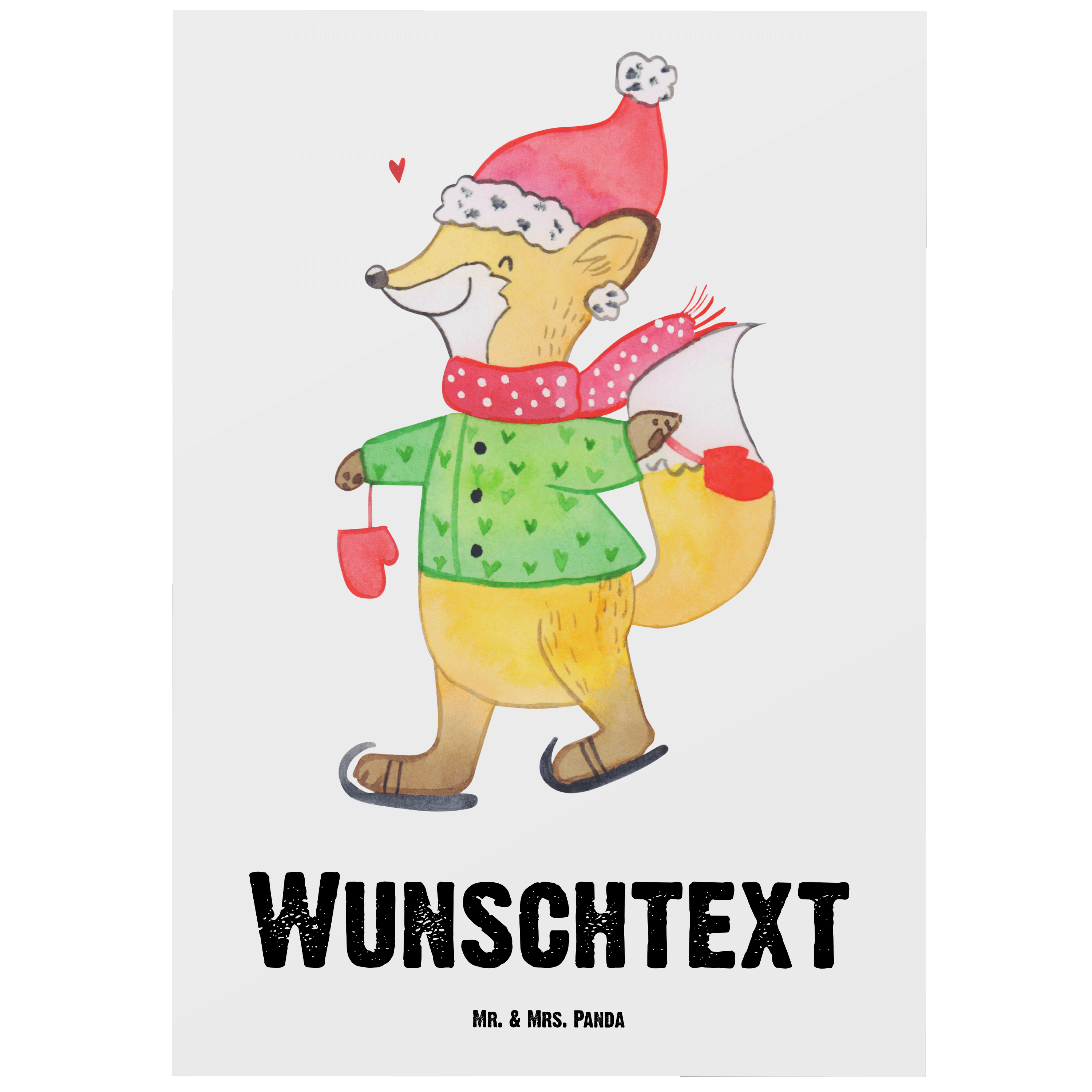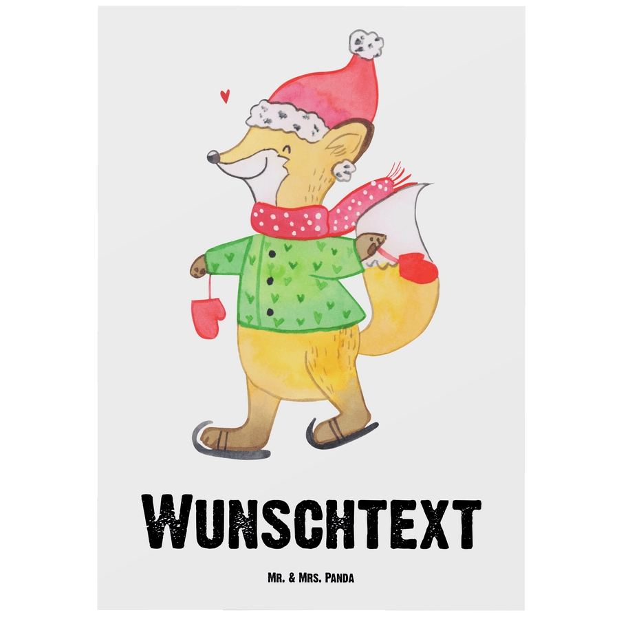 Personalisierte Postkarte Fuchs Schlittschuhe