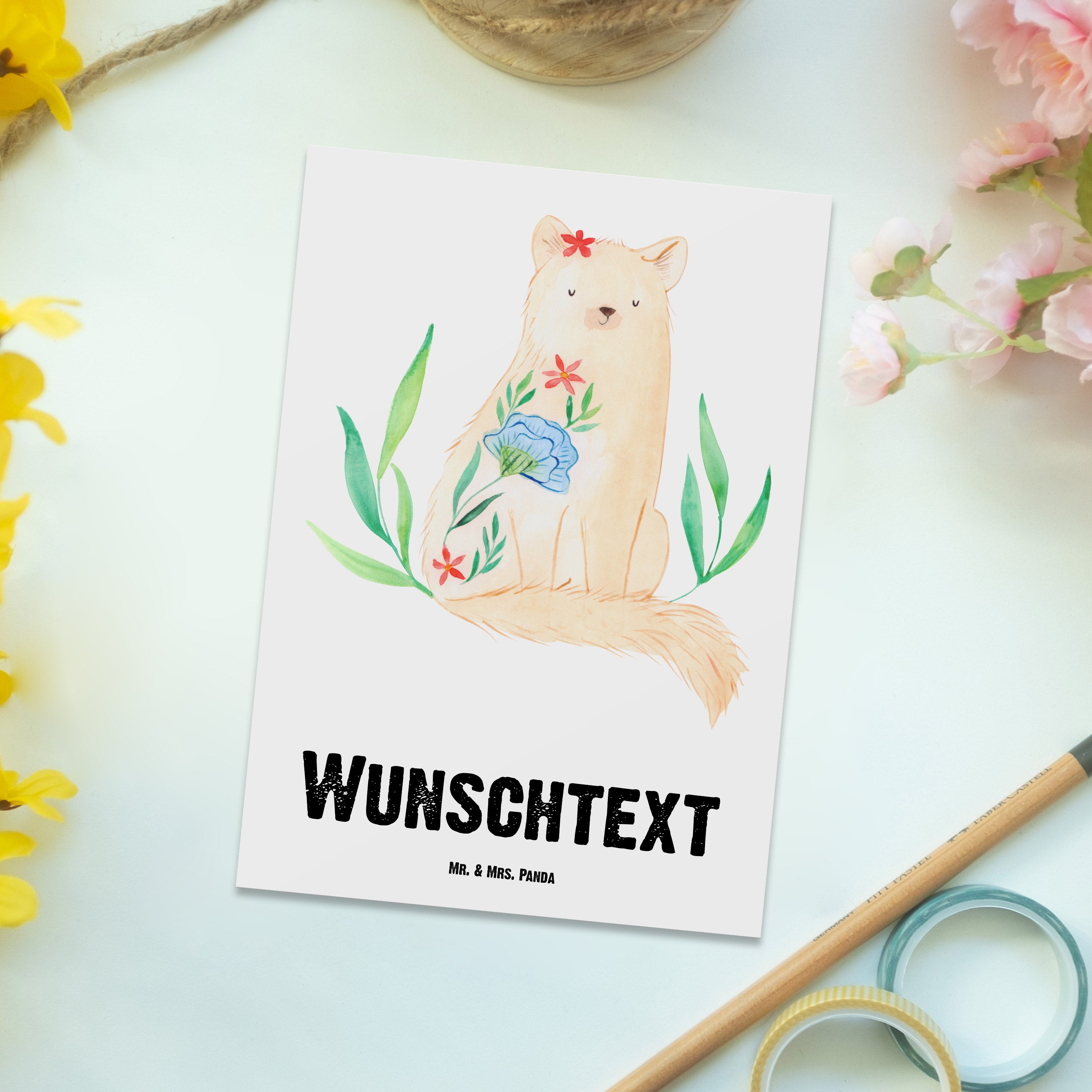 Personalisierte Postkarte Katze Blumen