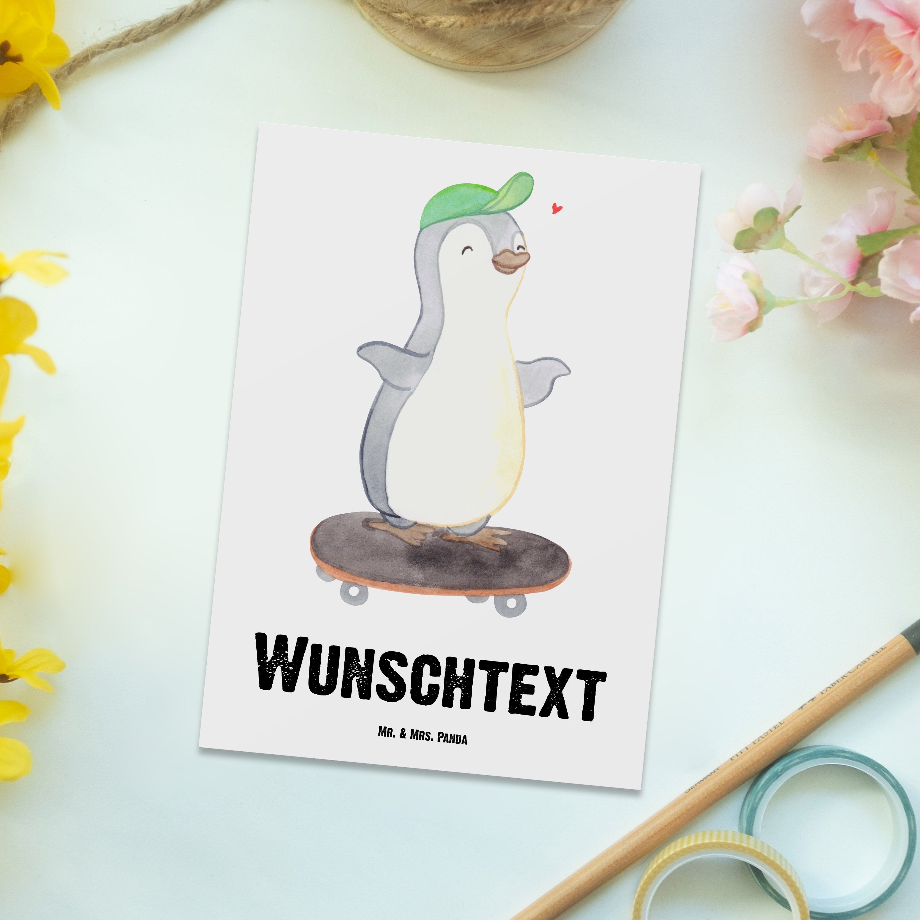 Personalisierte Postkarte Pinguin Skateboarden Tage Postkarte mit Namen, Postkarte bedrucken, Postkarte mit Wunschtext, Postkarte personalisierbar, Geschenkkarte mit Namen, Grußkarte mit Namen, Karte mit Namen, Einladung mit Namen, Ansichtskarte mit Namen, Geschenkkarte mit Wunschtext, Grußkarte mit Wunschtext, Karte mit Wunschtext, Einladung mit Wunschtext, Ansichtskarte mit Wunschtext, Geschenk, Sport, Sportart, Hobby, Schenken, Danke, Dankeschön, Auszeichnung, Gewinn, Sportler, Skateboarden, Skateboard fahren, Skaten, Skateboard, Skateplatz