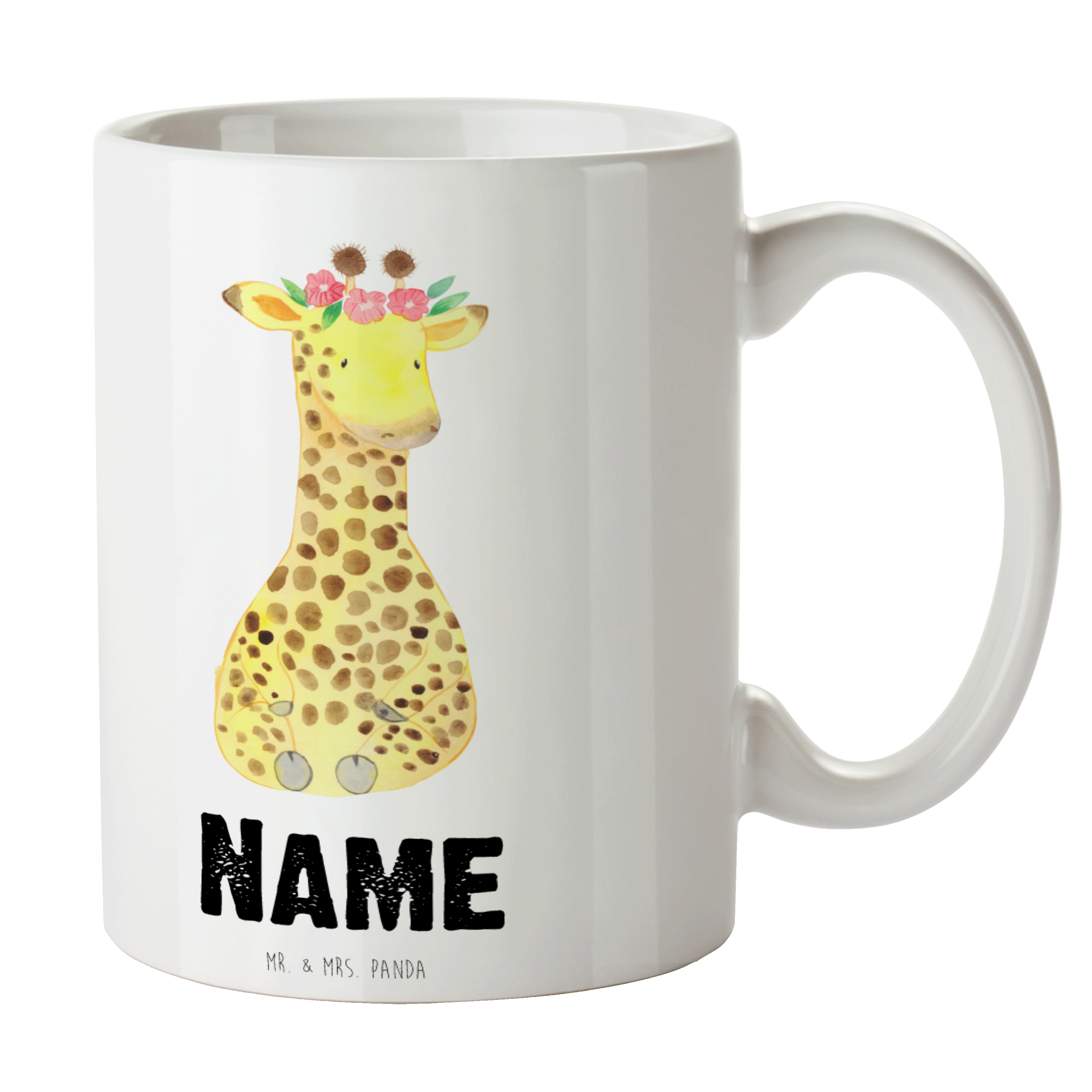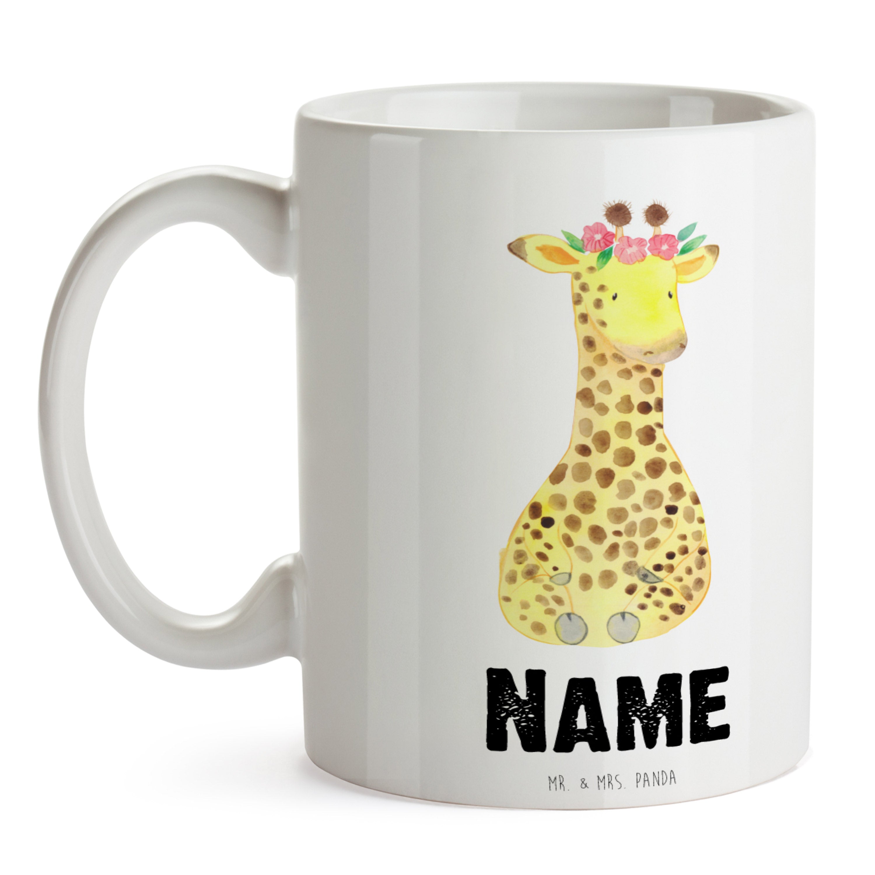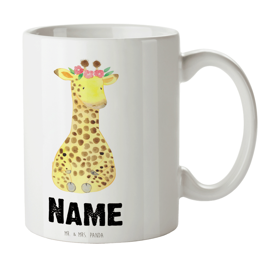 Personalisierte Tasse Giraffe Blumenkranz