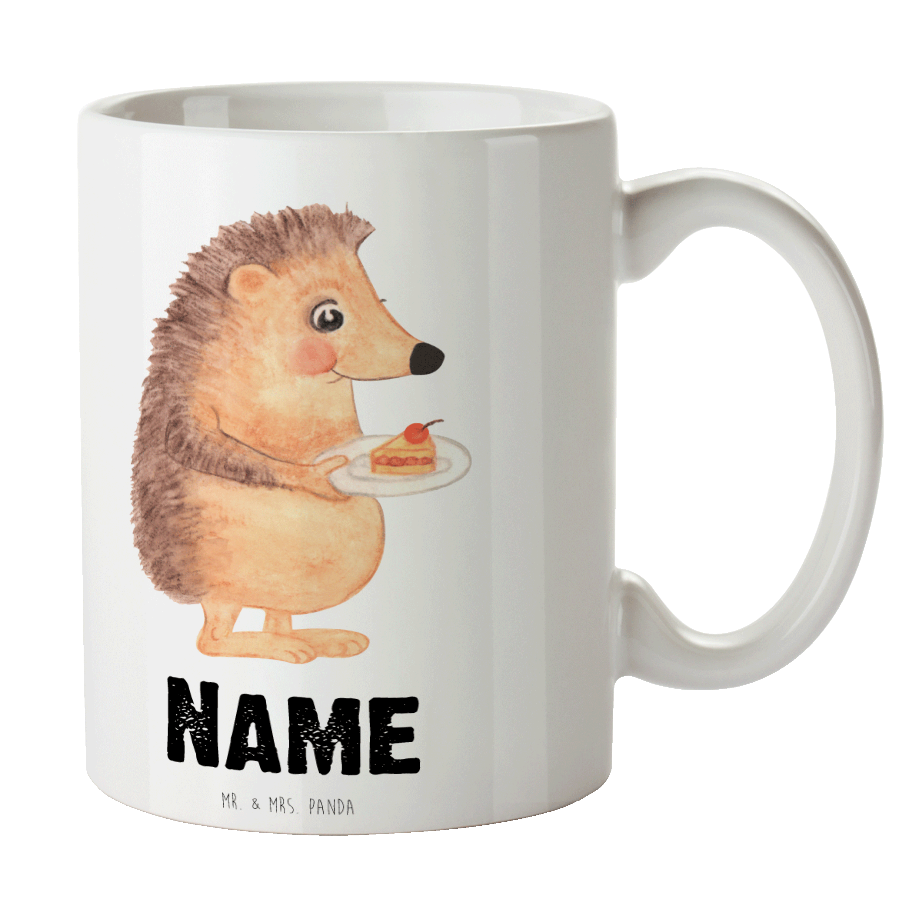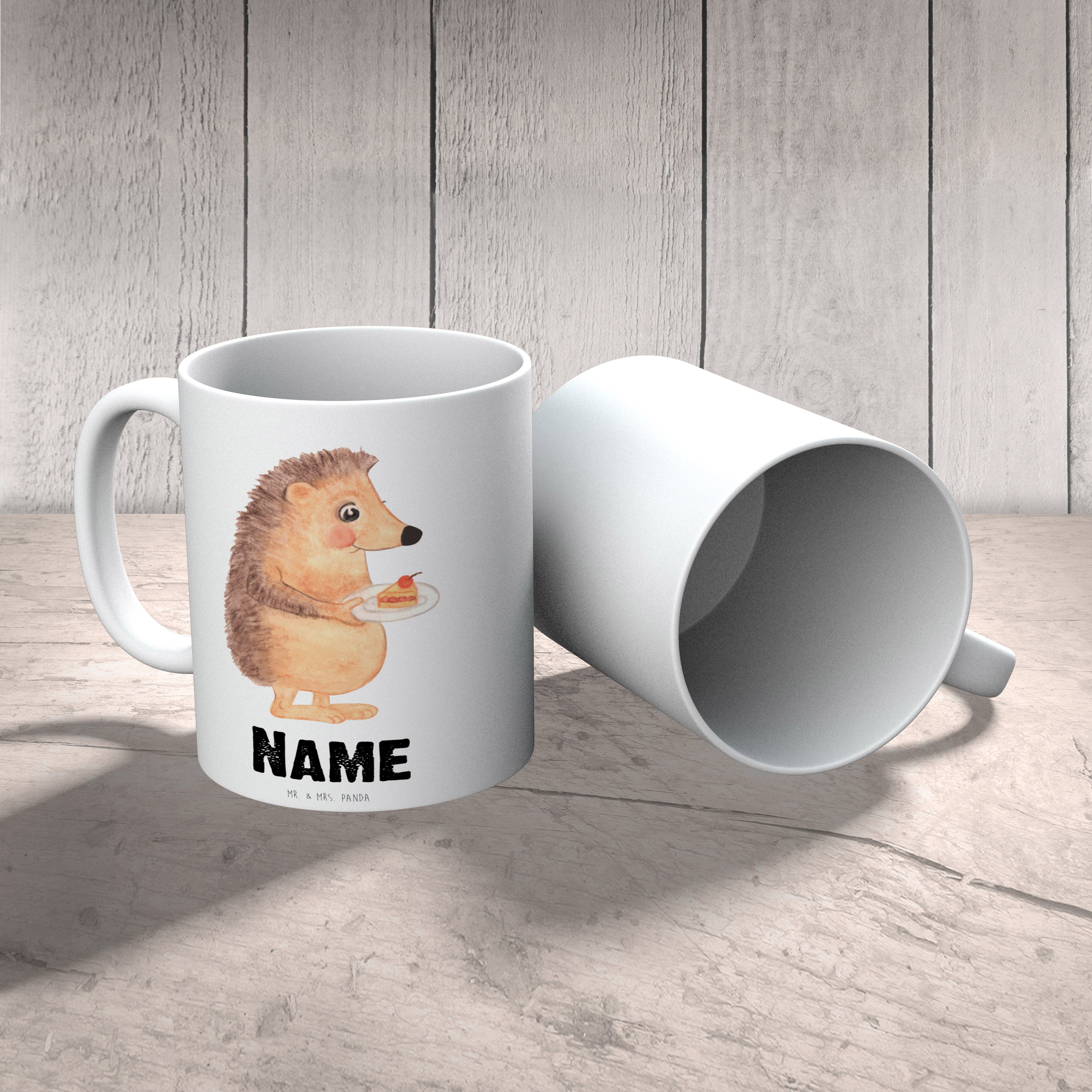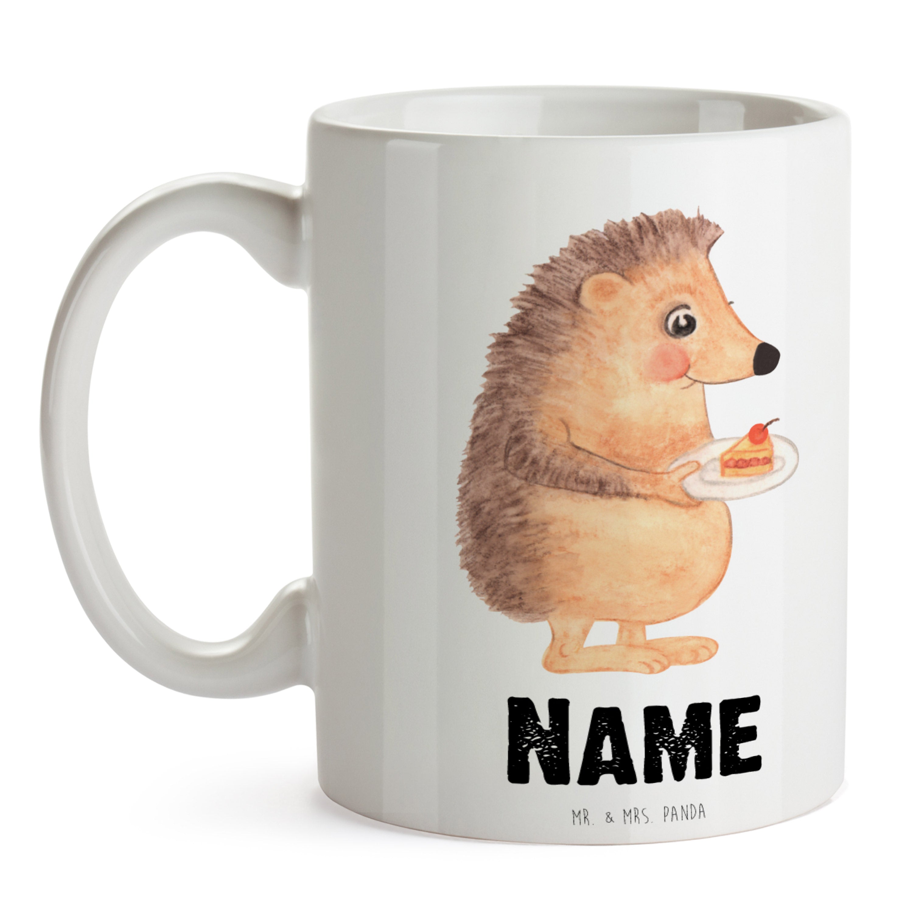 Personalisierte Tasse Igel mit Kuchenstück