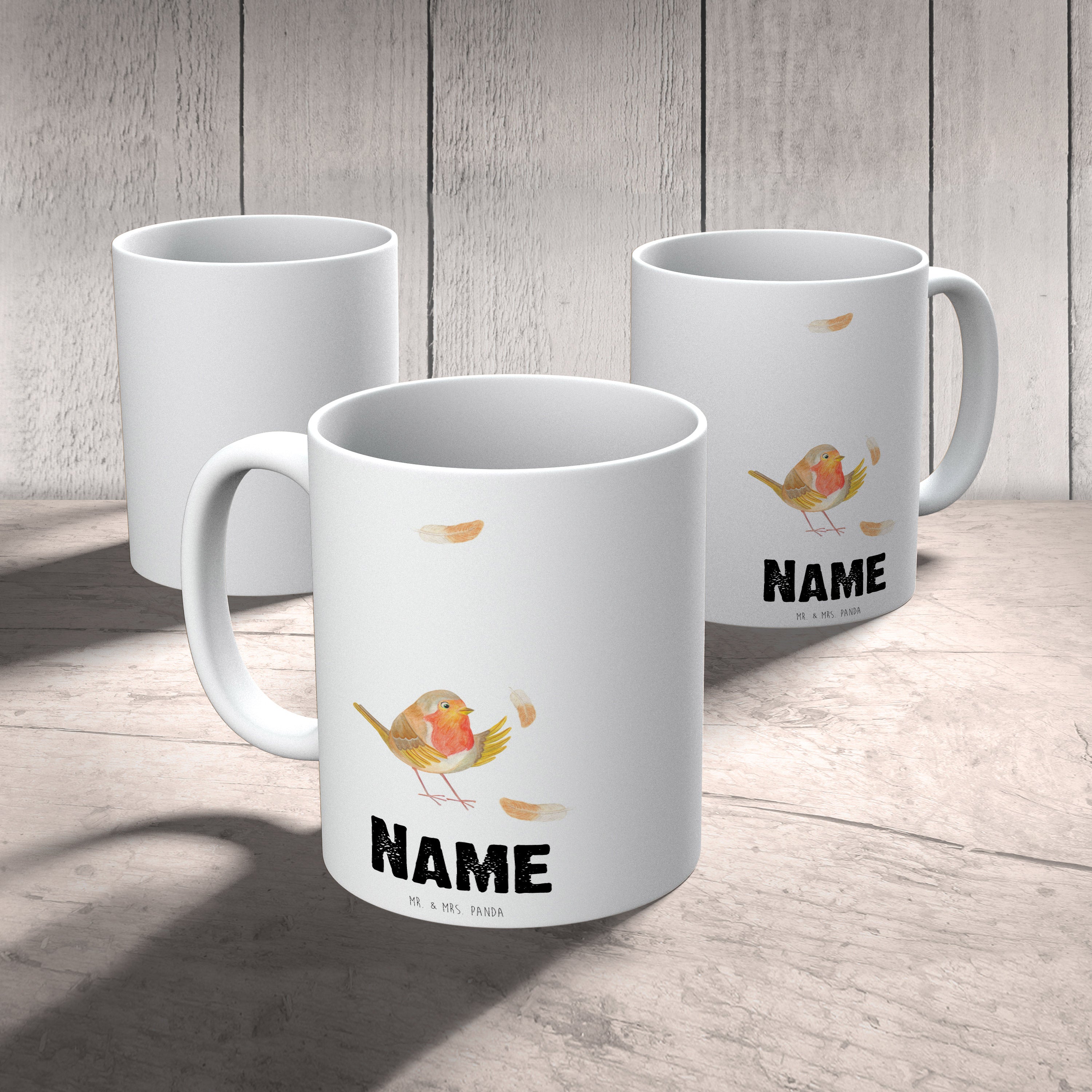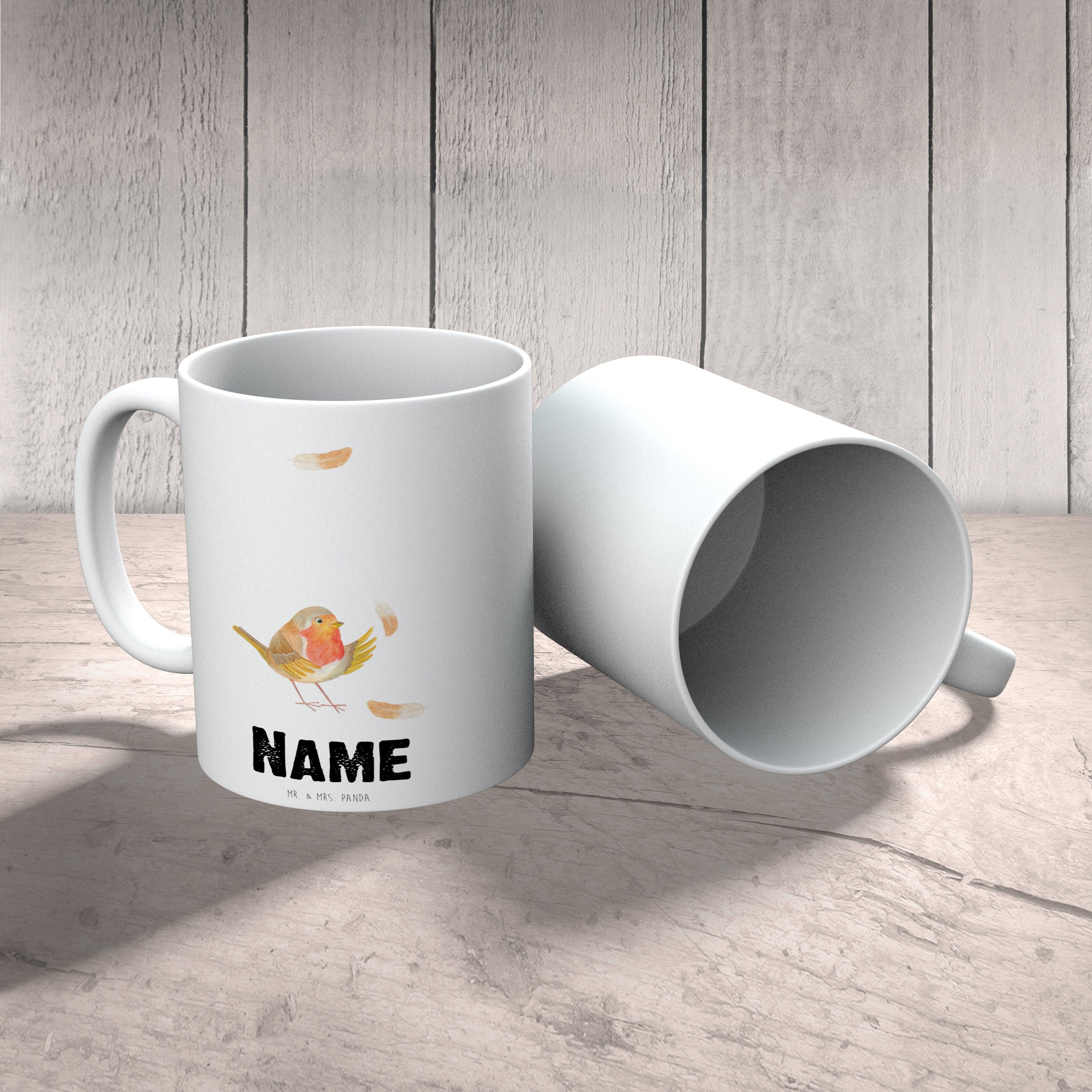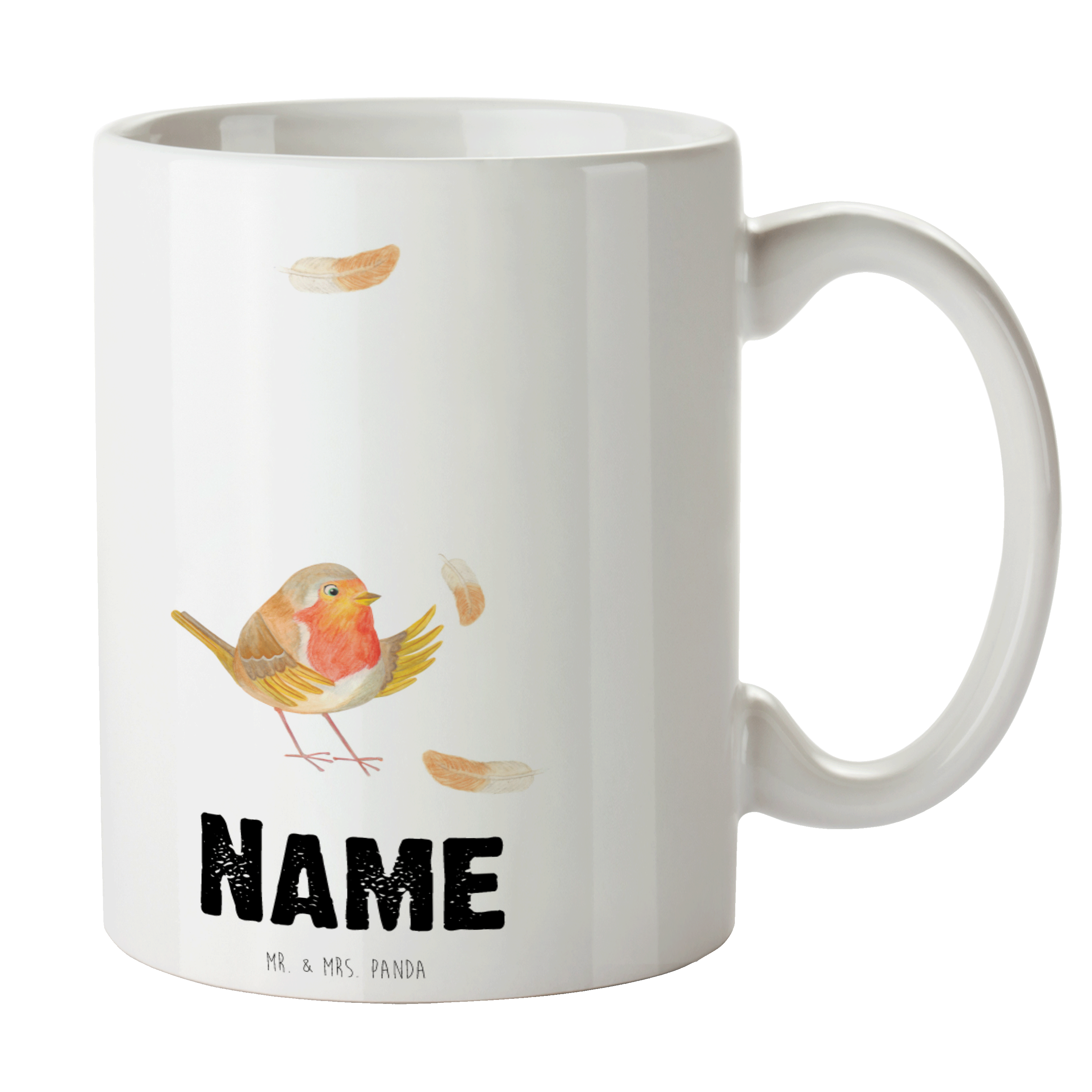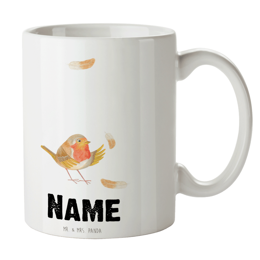 Personalisierte Tasse Rotkehlchen mit Federn