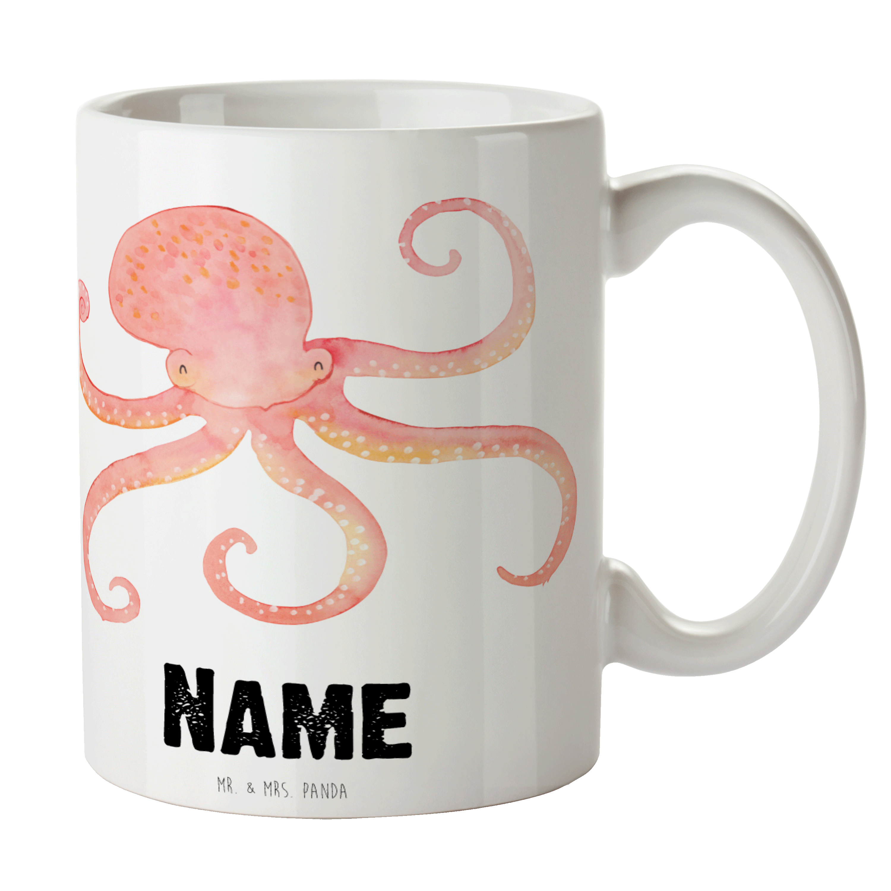Mit dem Tintenfisch als dein Begleiter hast du immer gute Laune. Seine rote Farbe und sein fröhliches Winken verbreiten Glück und Freude in deinem Alltag.