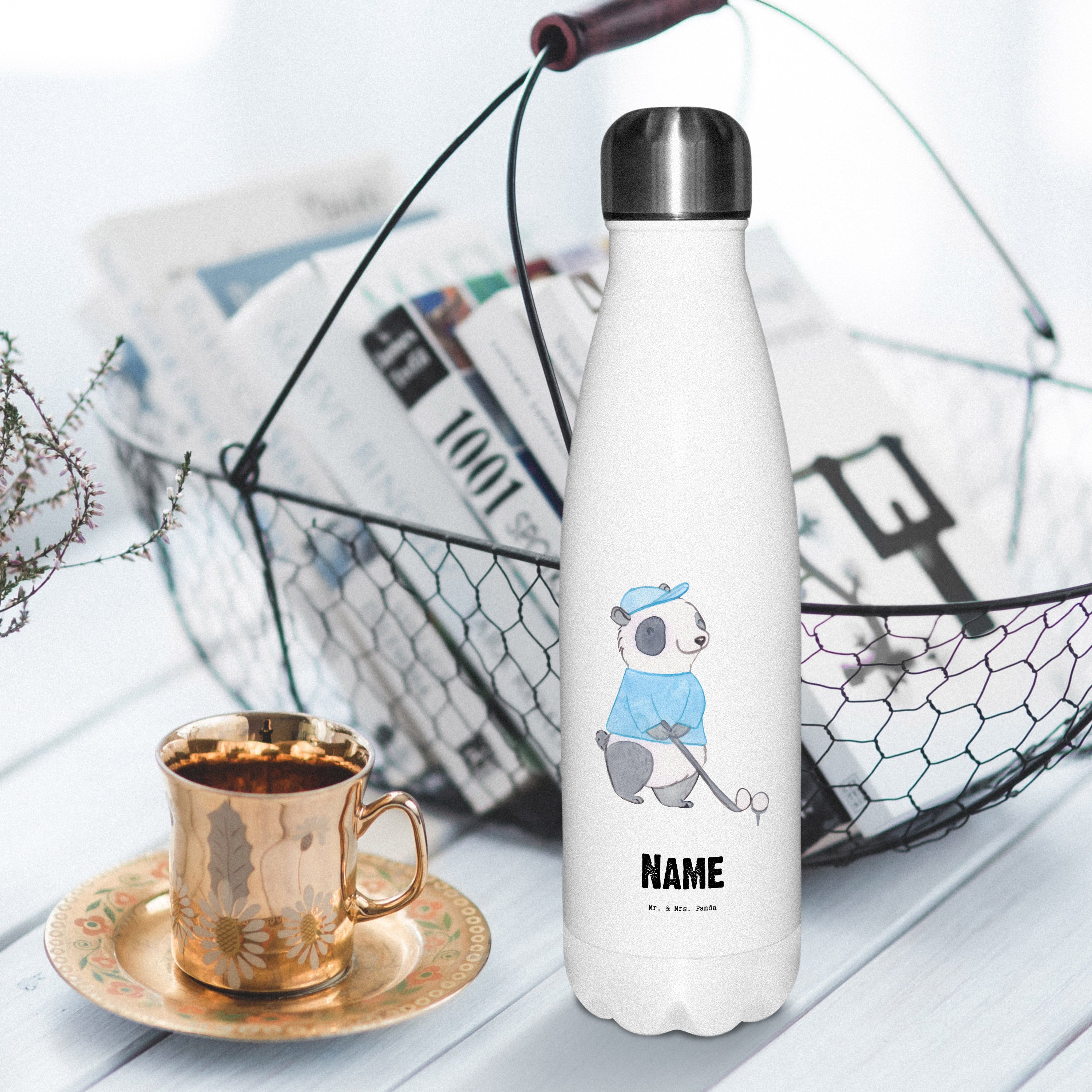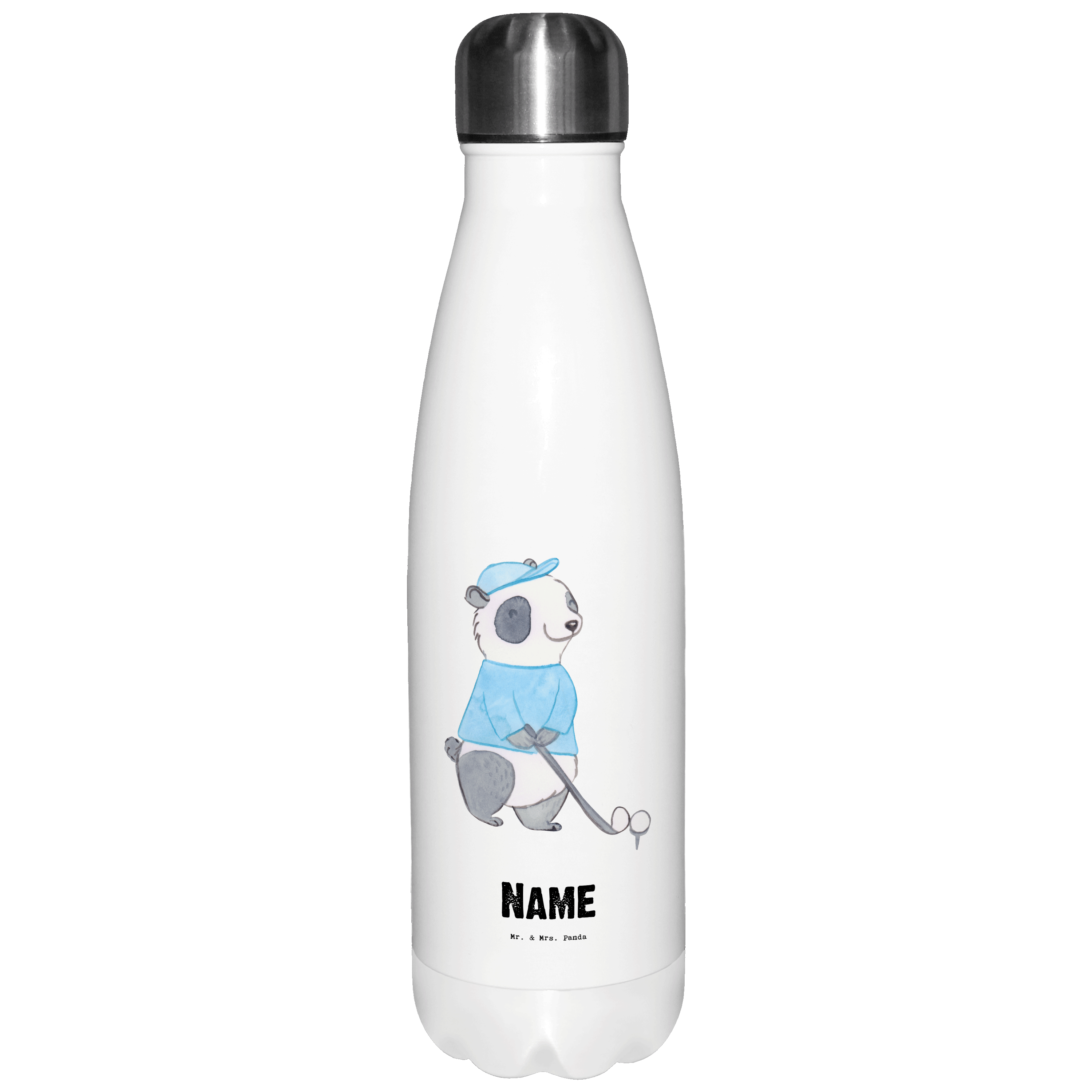 Personalisierte Thermosflasche Panda Golfen Tage