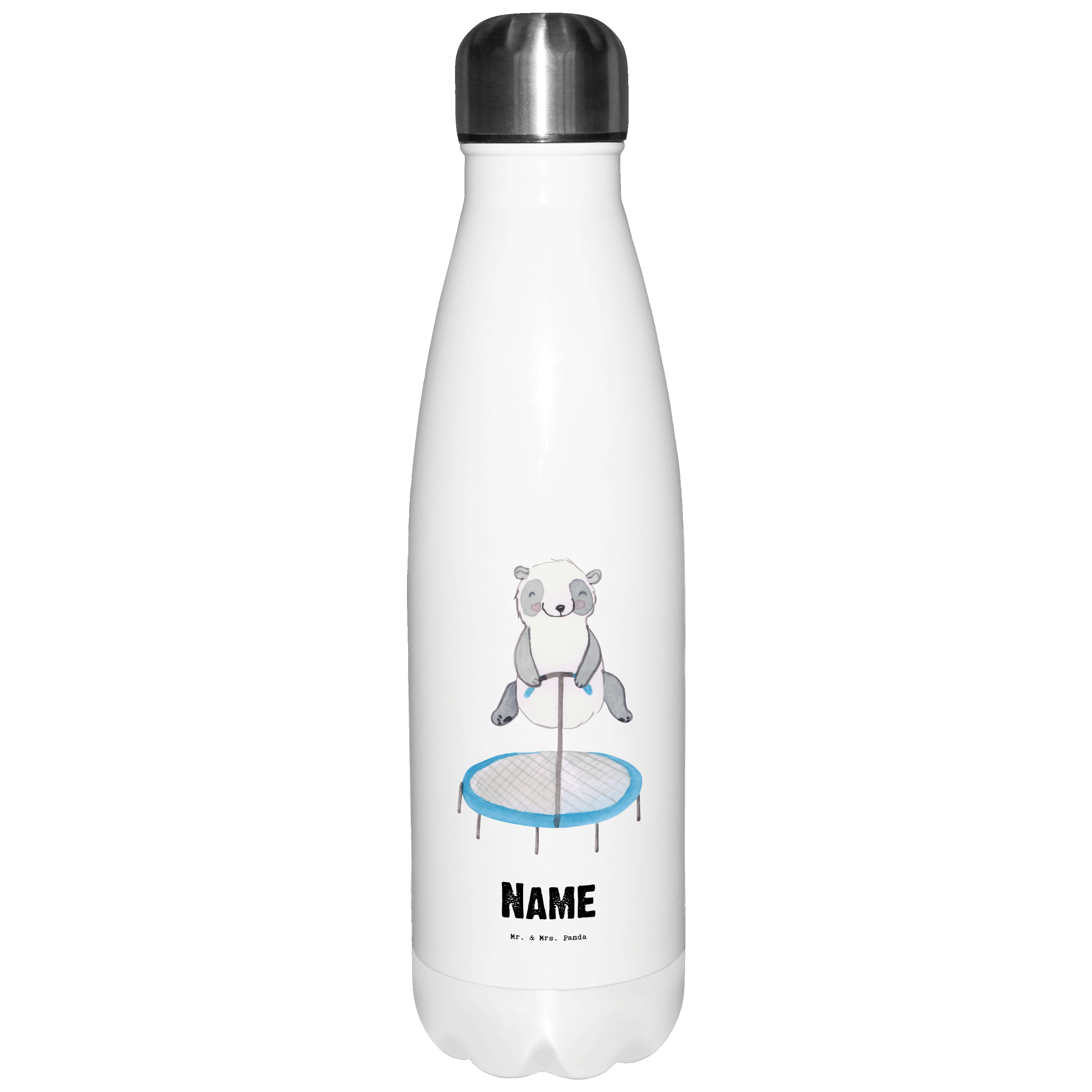 Personalisierte Thermosflasche Panda Trampolin springen Tage