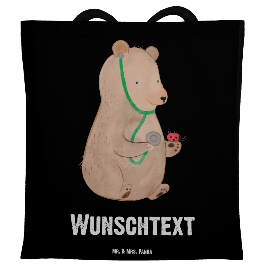 Personalisierte Tragetasche Bär Arzt - Schwarz
