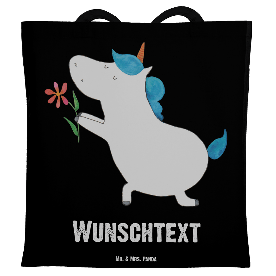 Personalisierte Tragetasche Einhorn Blume - Schwarz