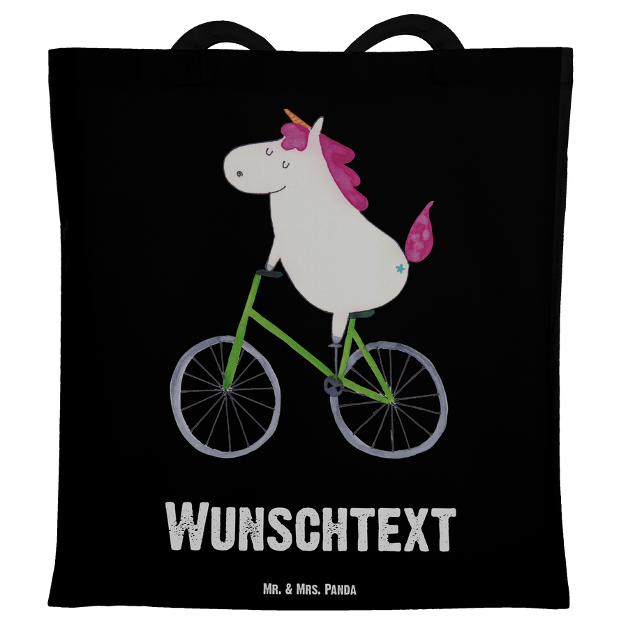 Personalisierte Tragetasche Einhorn Radfahrer - Schwarz