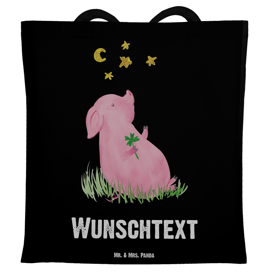 Personalisierte Tragetasche Glücksschwein - Schwarz