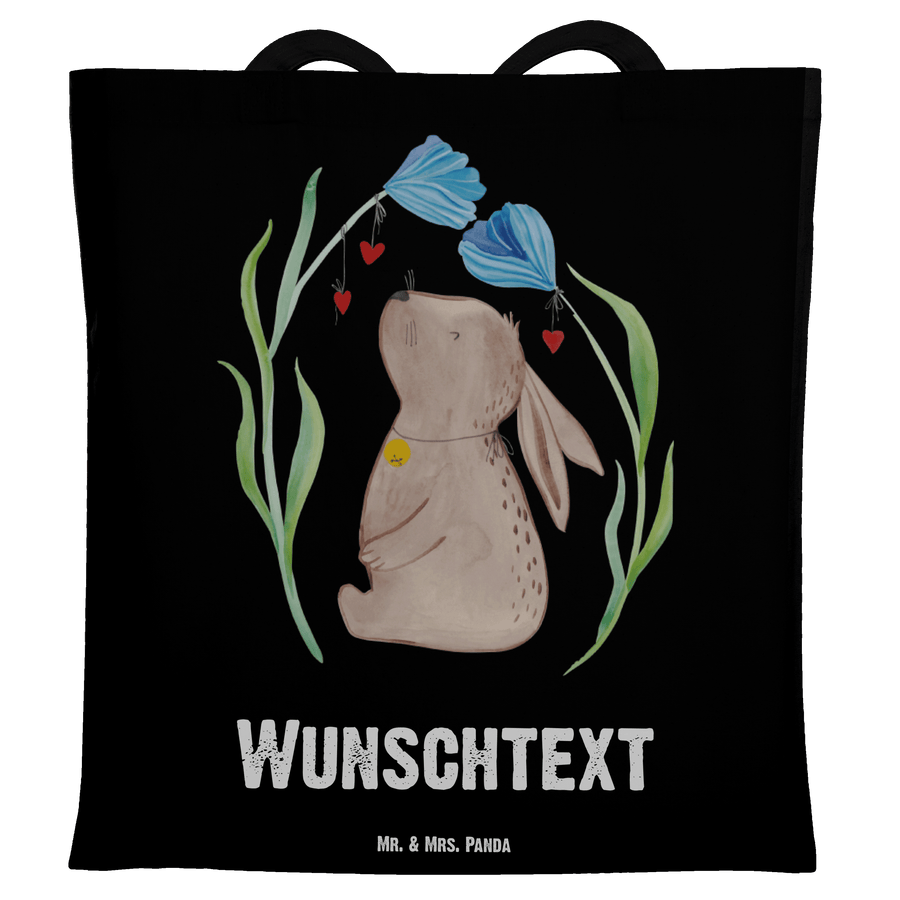 Personalisierte Tragetasche Hase Blume - Schwarz