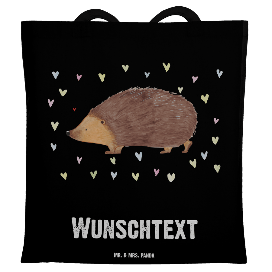 Personalisierte Tragetasche Igel Herzen - Schwarz