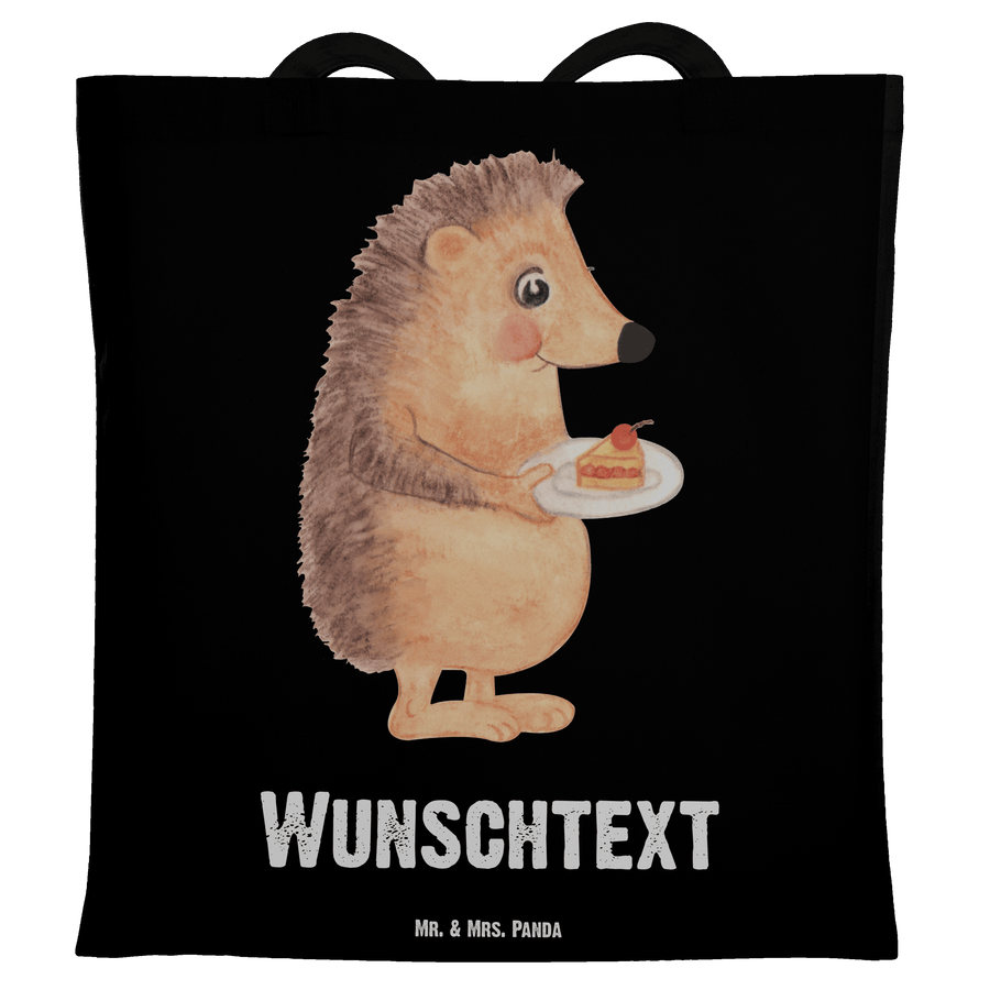 Personalisierte Tragetasche Igel mit Kuchenstück - Schwarz