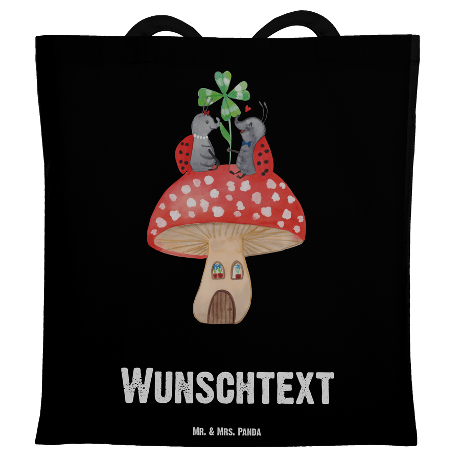 Personalisierte Tragetasche Marienkäfer Paar Fliegenpilz - Schwarz