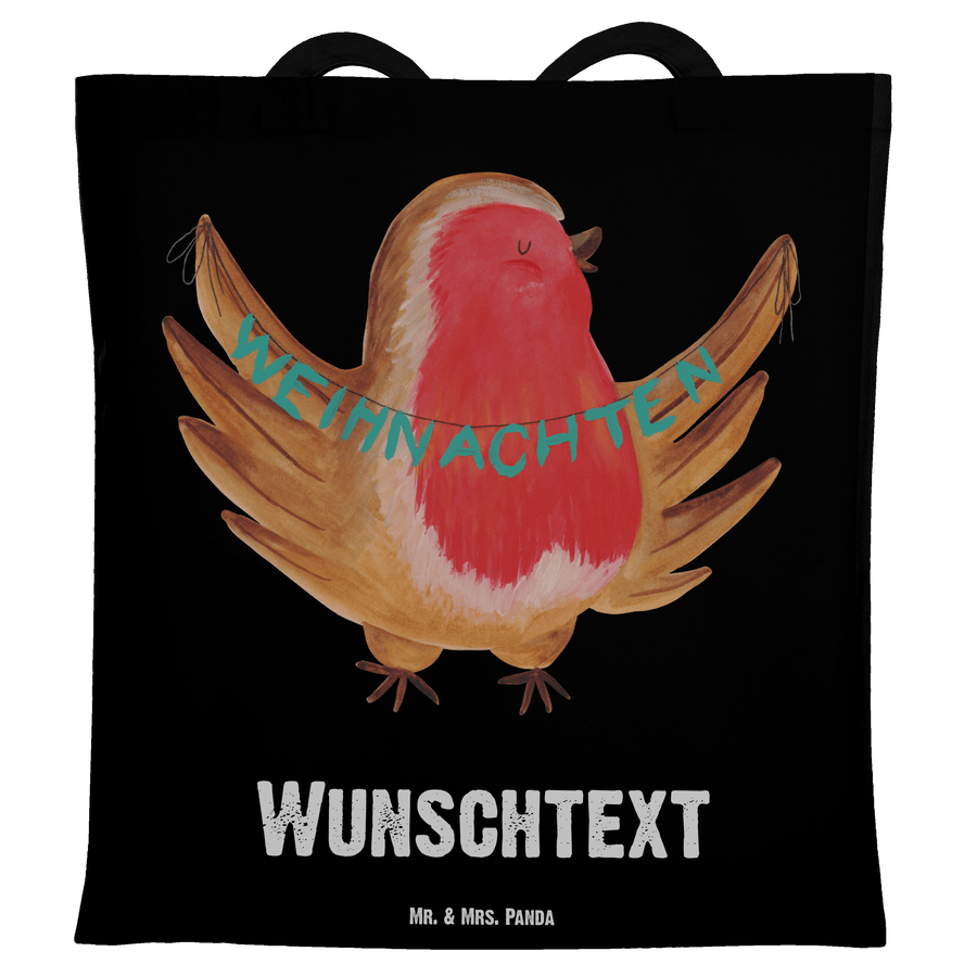Personalisierte Tragetasche Rotkehlchen Weihnachten - Schwarz