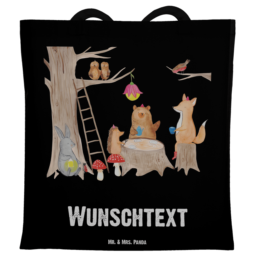 Personalisierte Tragetasche Waldtiere Picknick - Schwarz