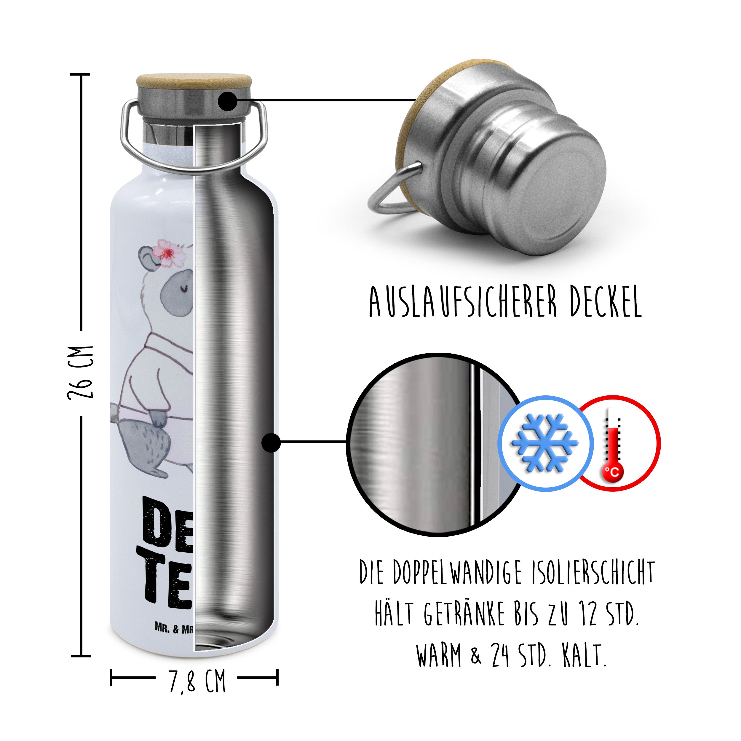 Die Isolierflasche sorgt dank Doppelwand-Isolierung dafür, dass heiße Getränke nicht an Wärme verlieren und kalte Getränke eiskalt bleiben.
