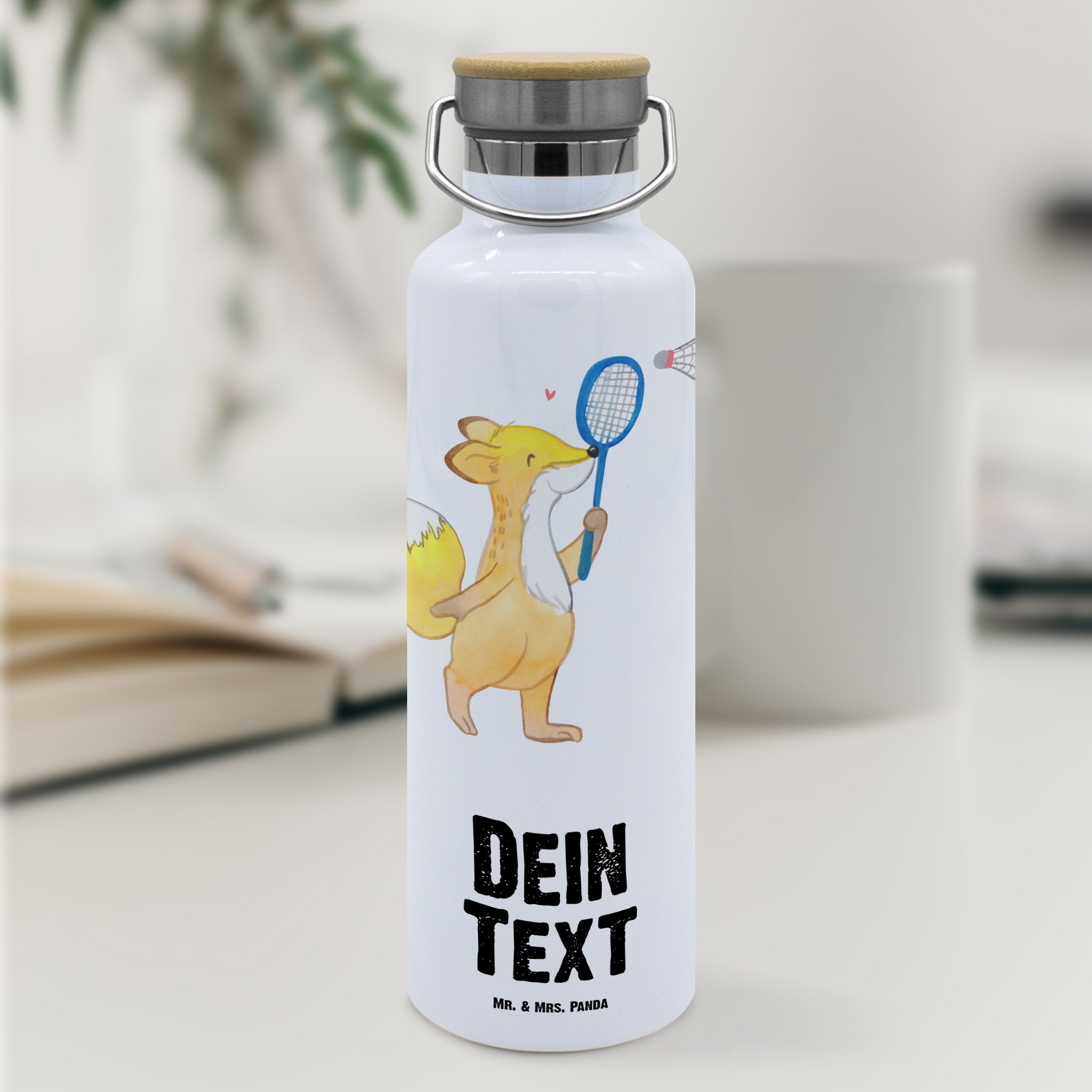 Personalisierte Trinkflasche Fuchs Federball spielen Tage