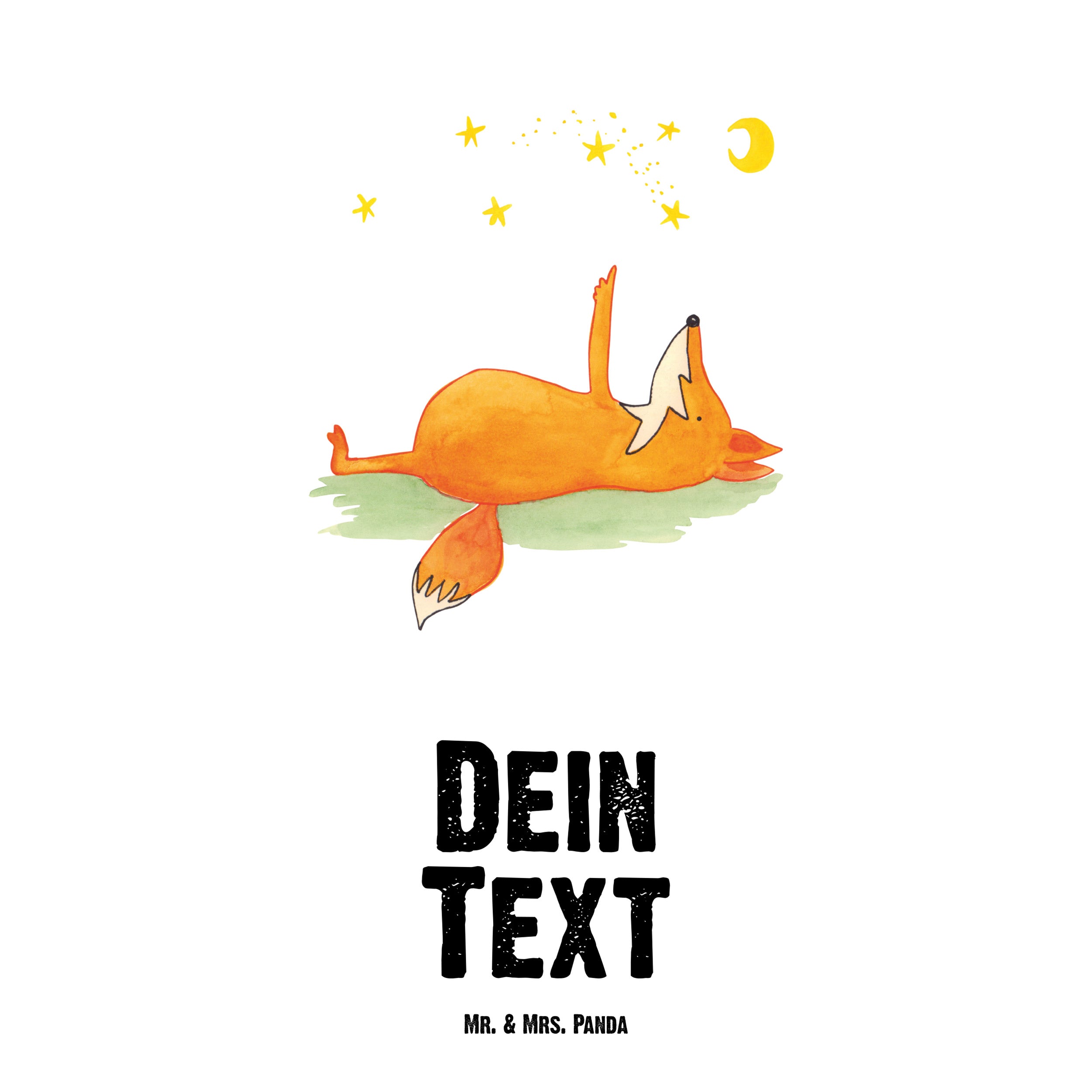 Mit unserem Motiv "Fuchs Sterne" kannst du dich auf einen Blick in den Sternenhimmel begeben. Der süße Fuchs auf seinem Rücken lädt dich ein, gemeinsam mit ihm die Sterne anzuschauen. Das perfekte Motiv für alle Träumer und Sternengucker.