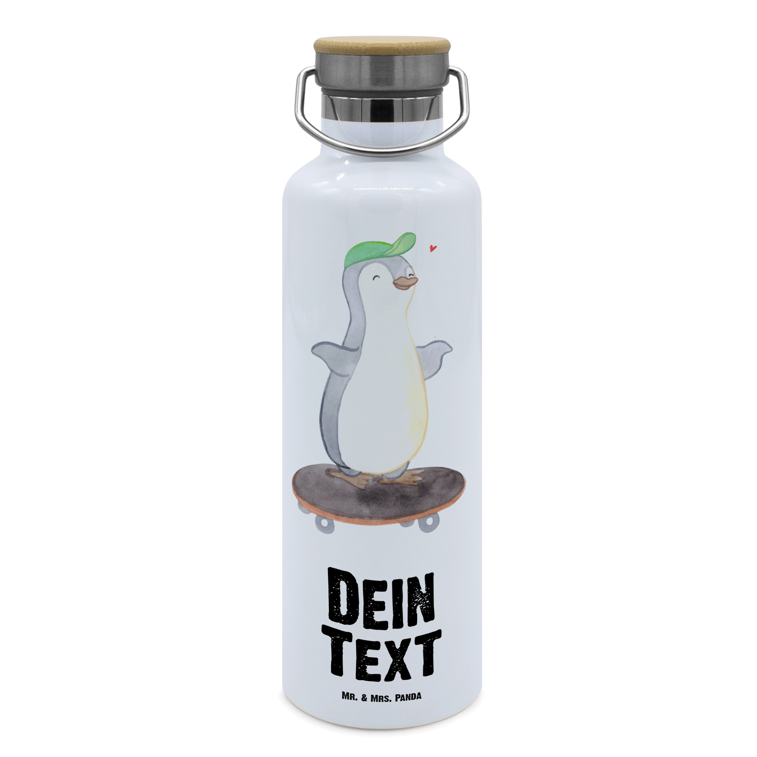 Personalisierte Trinkflasche Pinguin Skateboarden Tage