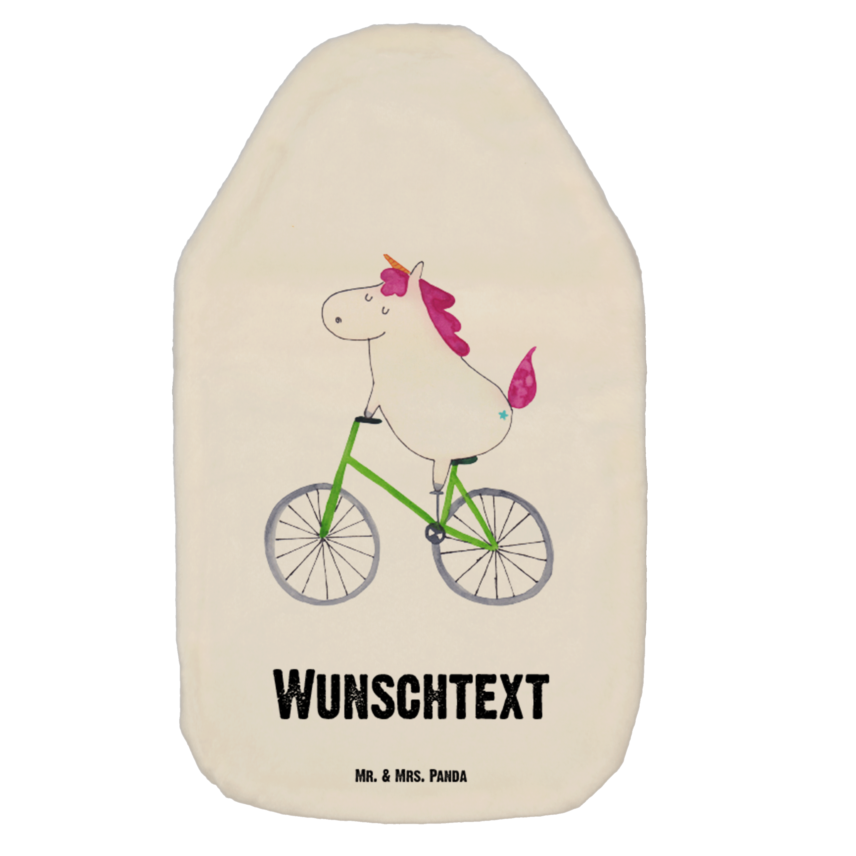 Personalisierte Wärmflasche Einhorn Radfahrer