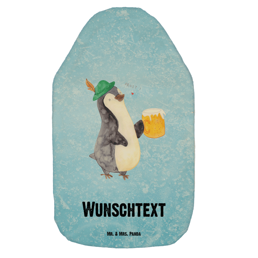 Personalisierte Wärmflasche Pinguin Bier - Eisblau