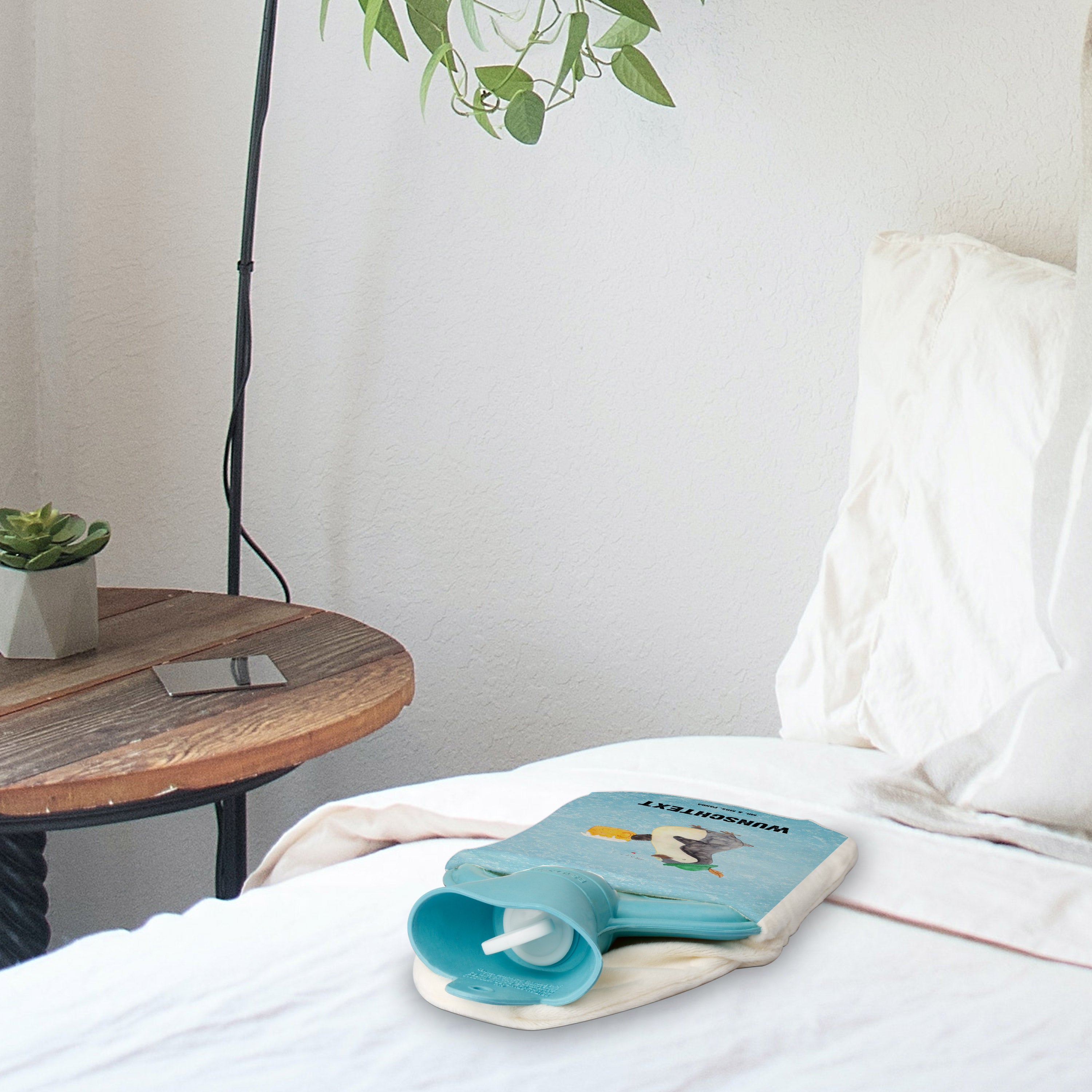 Das Mr. & Mrs. Panda Wärmflasche Set besteht aus der TÜV geprüften Wärmflasche und dem super flauschigen Wärmflaschenbezug. Dank des kuscheligen Bezugs hat die Wärmflasche immer den perfekten Wärmegrad. Sie eignet sich optimal zum Bettvorwärmen, für Regelschmerzen oder Verspannungen oder einfach nur zum angenehmen einschlafen.