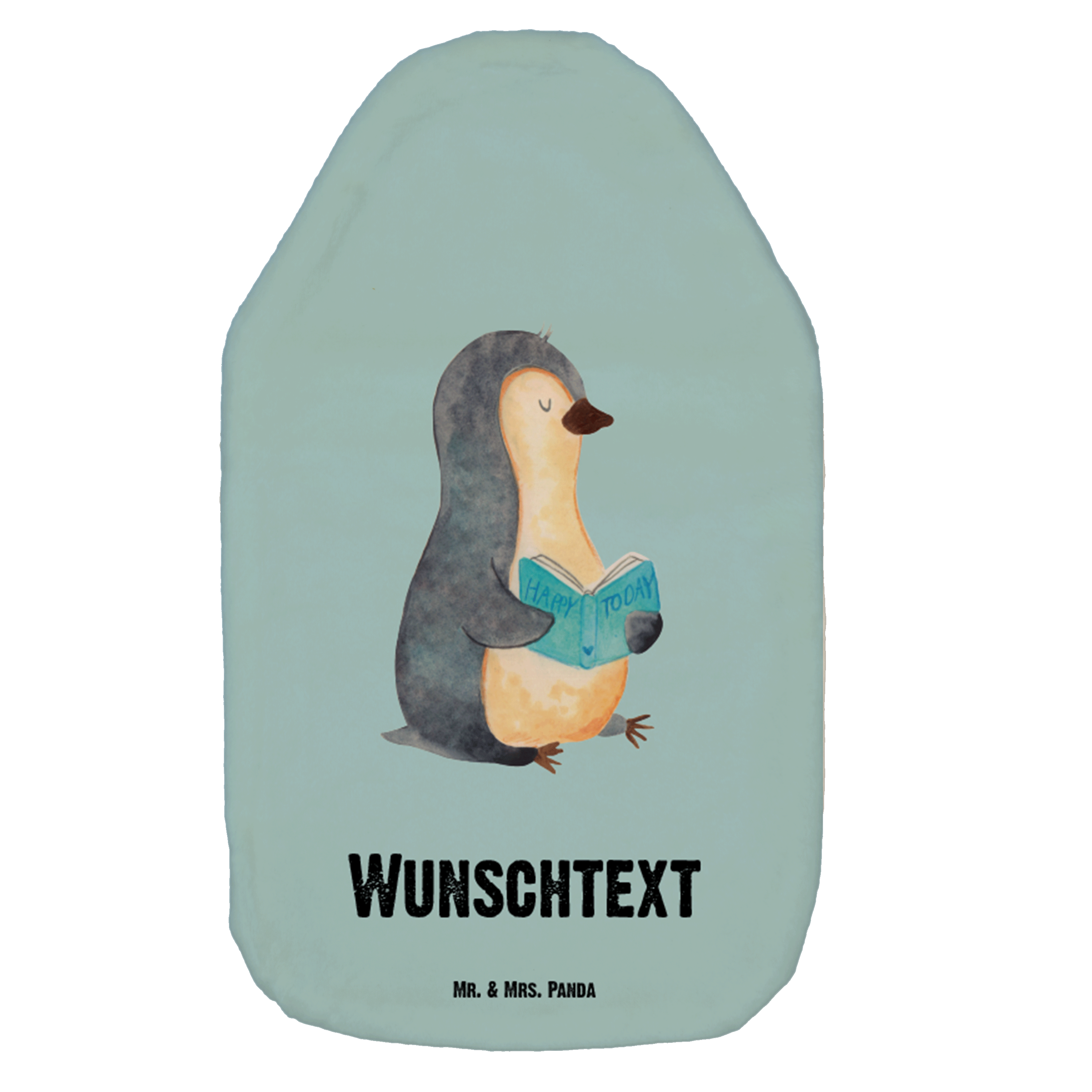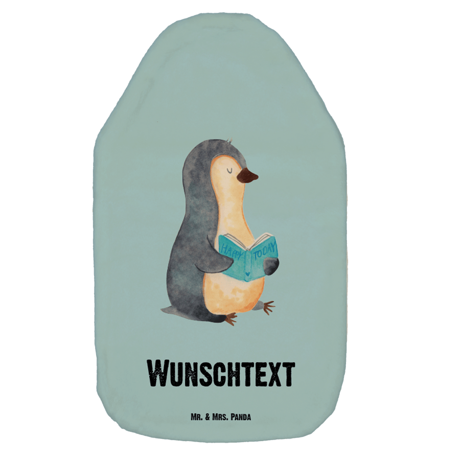 Personalisierte Wärmflasche Pinguin Buch - Eisblau