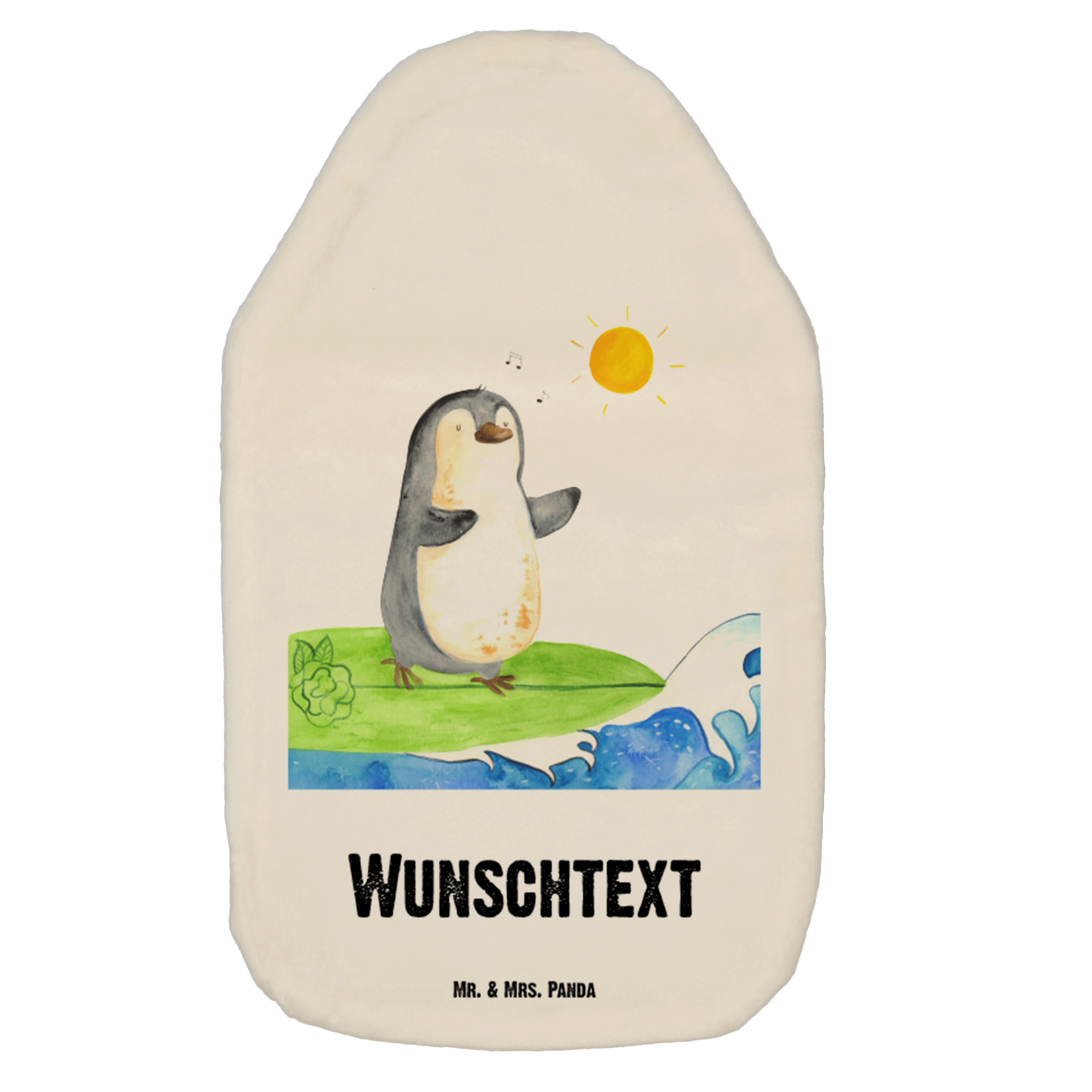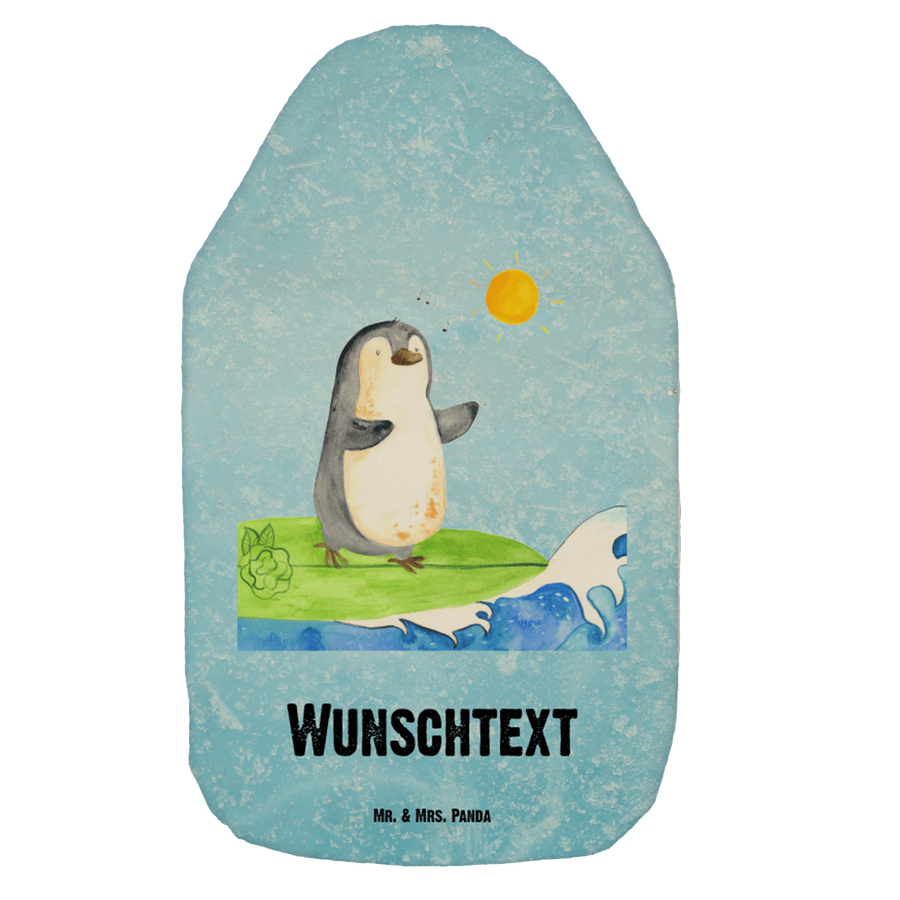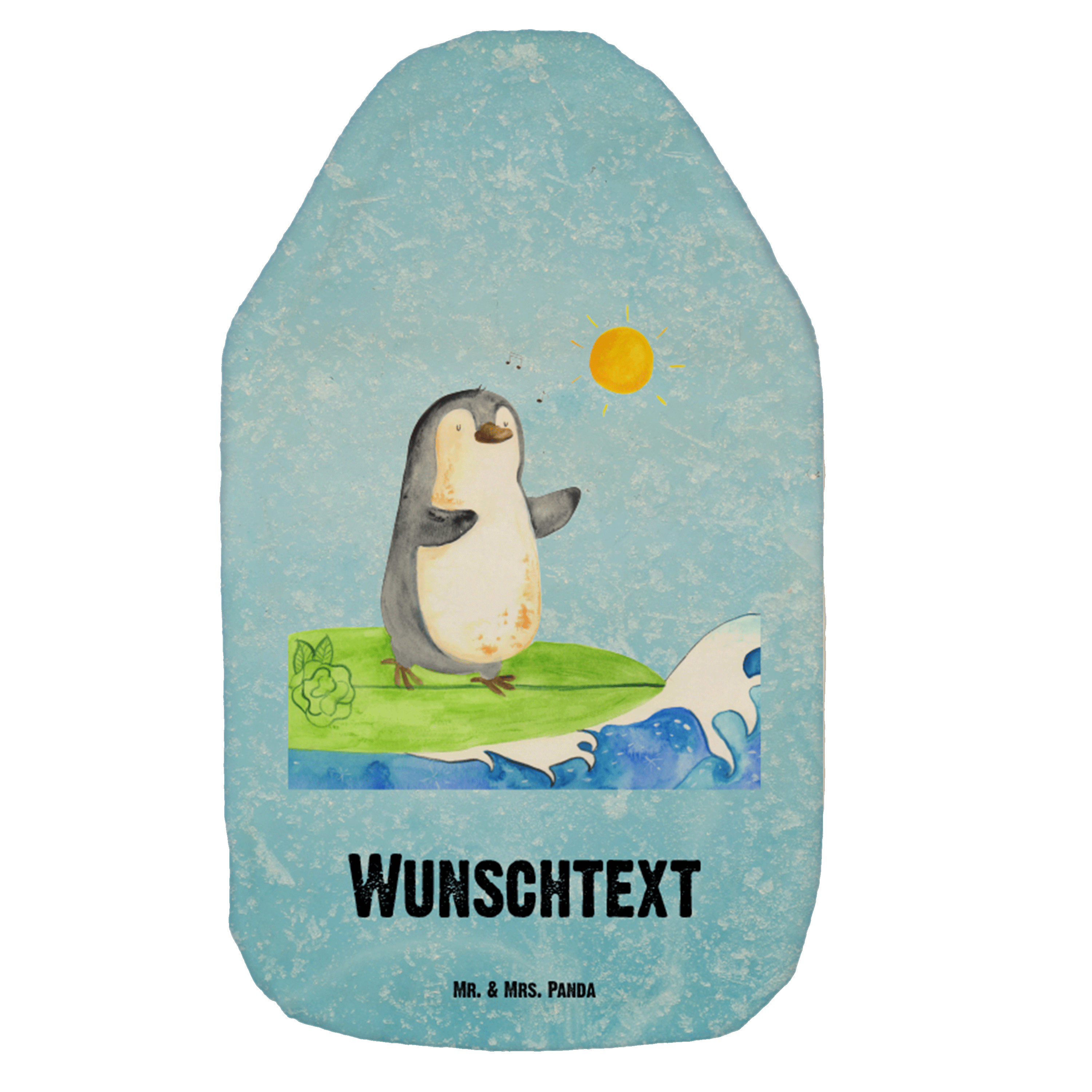 Personalisierte Wärmflasche Pinguin Surfer - Eisblau