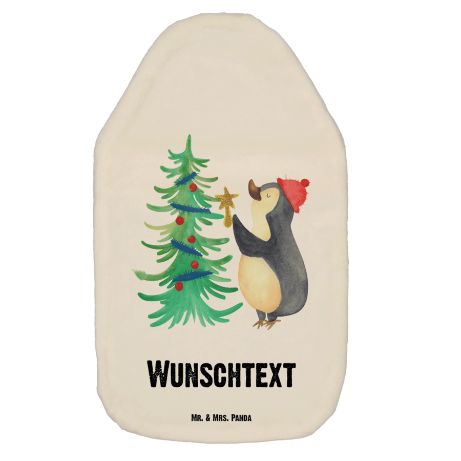Personalisierte Wärmflasche Pinguin Weihnachtsbaum - Weiß