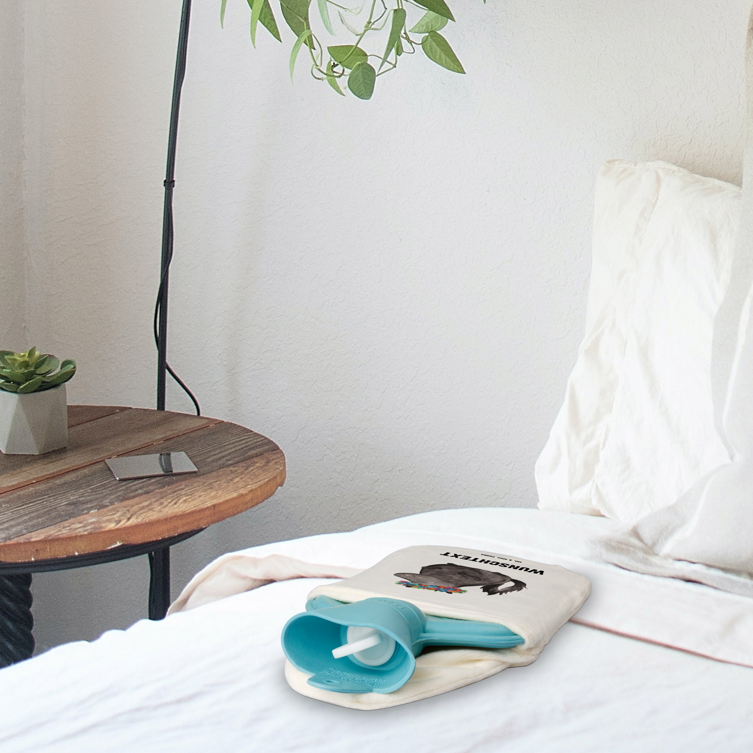 Das Mr. & Mrs. Panda Wärmflasche Set besteht aus der TÜV geprüften Wärmflasche und dem super flauschigen Wärmflaschenbezug. Dank des kuscheligen Bezugs hat die Wärmflasche immer den perfekten Wärmegrad. Sie eignet sich optimal zum Bettvorwärmen, für Regelschmerzen oder Verspannungen oder einfach nur zum angenehmen einschlafen.