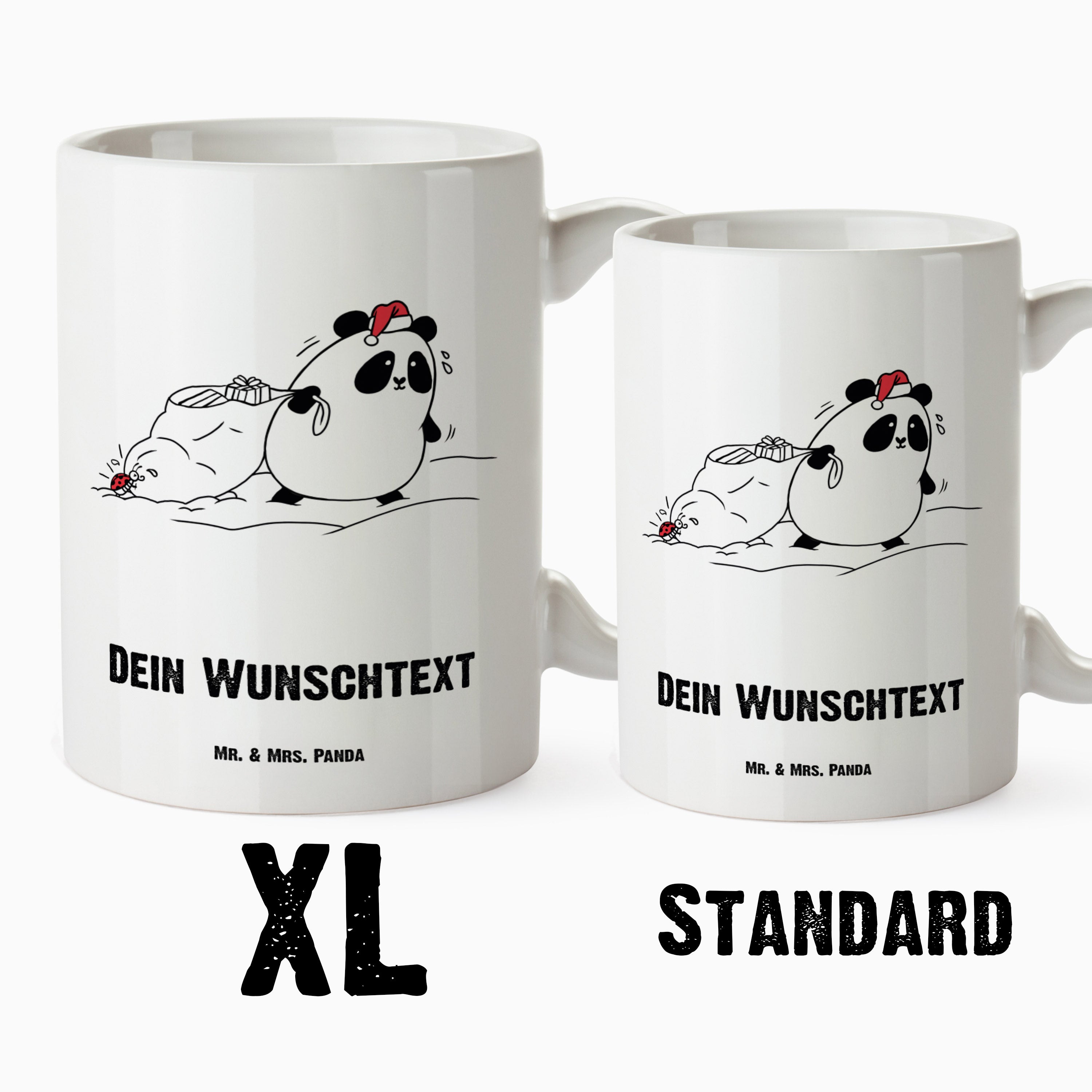Die Mr. & Mrs. Panda personalisierte XL Tasse mit Namen ist der perfekte Begleiter für jeden Kaffeeliebhaber. Mit ihrem XL-Füllvolumen von 500 ml und ihrer Höhe von 10,5 cm ist sie perfekt für alle, die es gerne groß und geräumig mögen. Die Tasse besteht aus hochwertiger Keramik und ist glänzend weiß lasiert, was sie zu einem echten Hingucker in jeder Kaffeetafel macht. Der brillant leuchtende Druck des Panda-Motivs bringt Freude in den Alltag und ist durch die Spülmaschinenfestigkeit sehr pflegeleicht. Mit einem Gewicht von 520 g ist die Tasse stabil und langlebig.