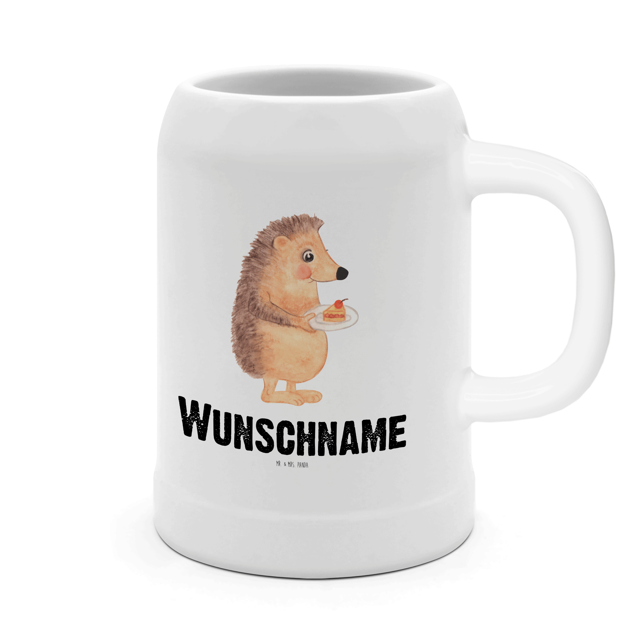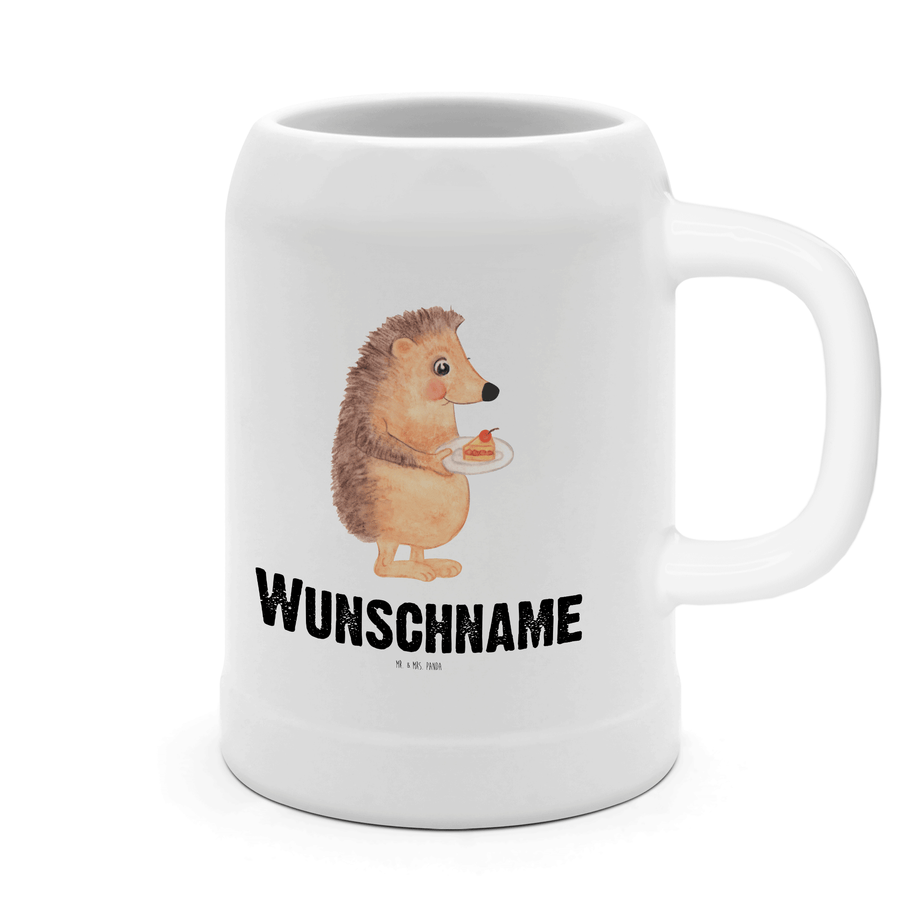 Personalisierter Bierkrug Igel mit Kuchenstück