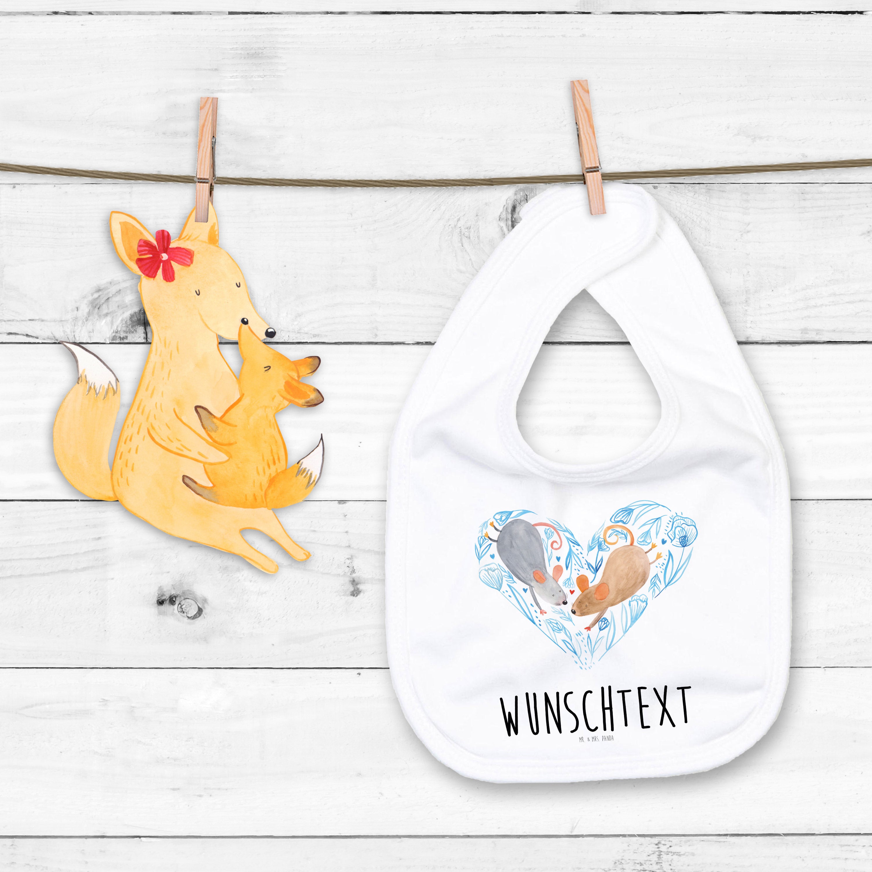 Personalisiertes Babylätzchen Mäuse Herz
