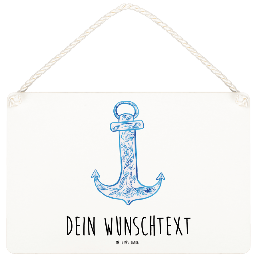Personalisiertes Deko Schild Anker Blau - Weiß - DIN A6