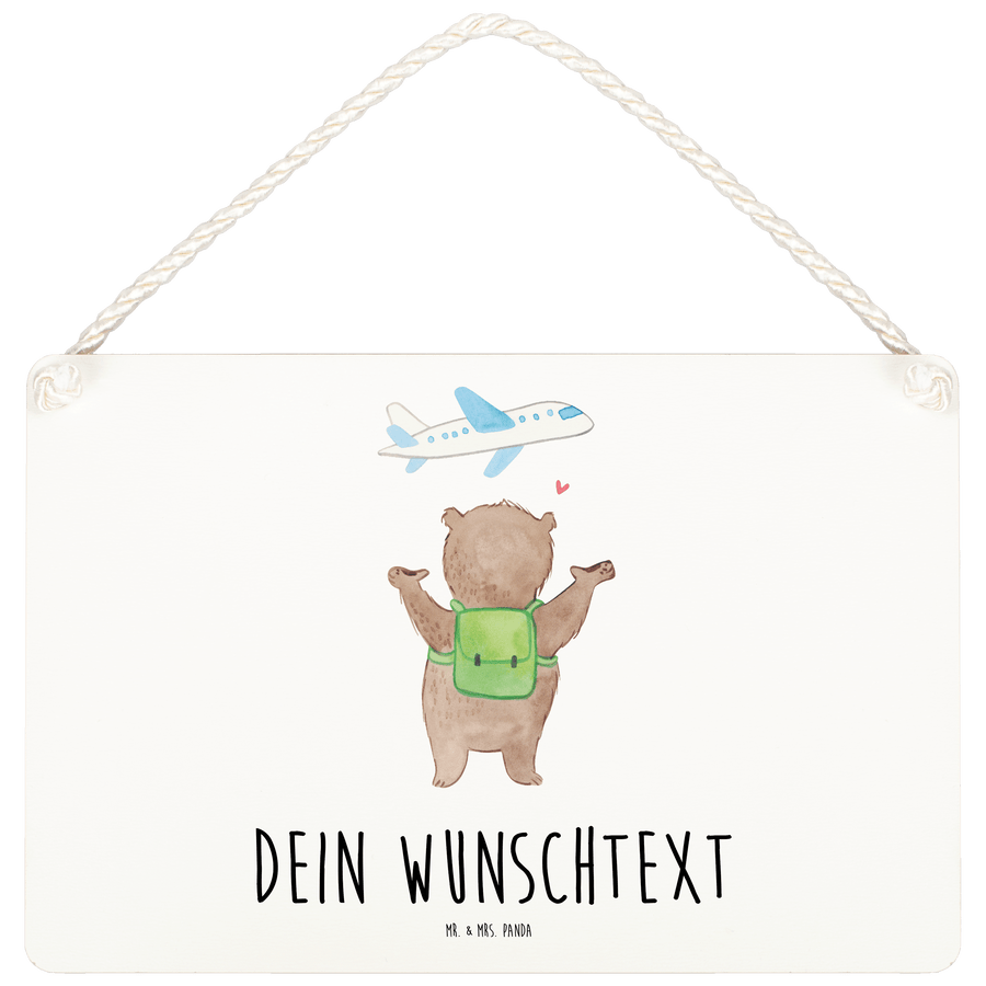 Personalisiertes Deko Schild Bär Flugzeug - Weiß - DIN A5