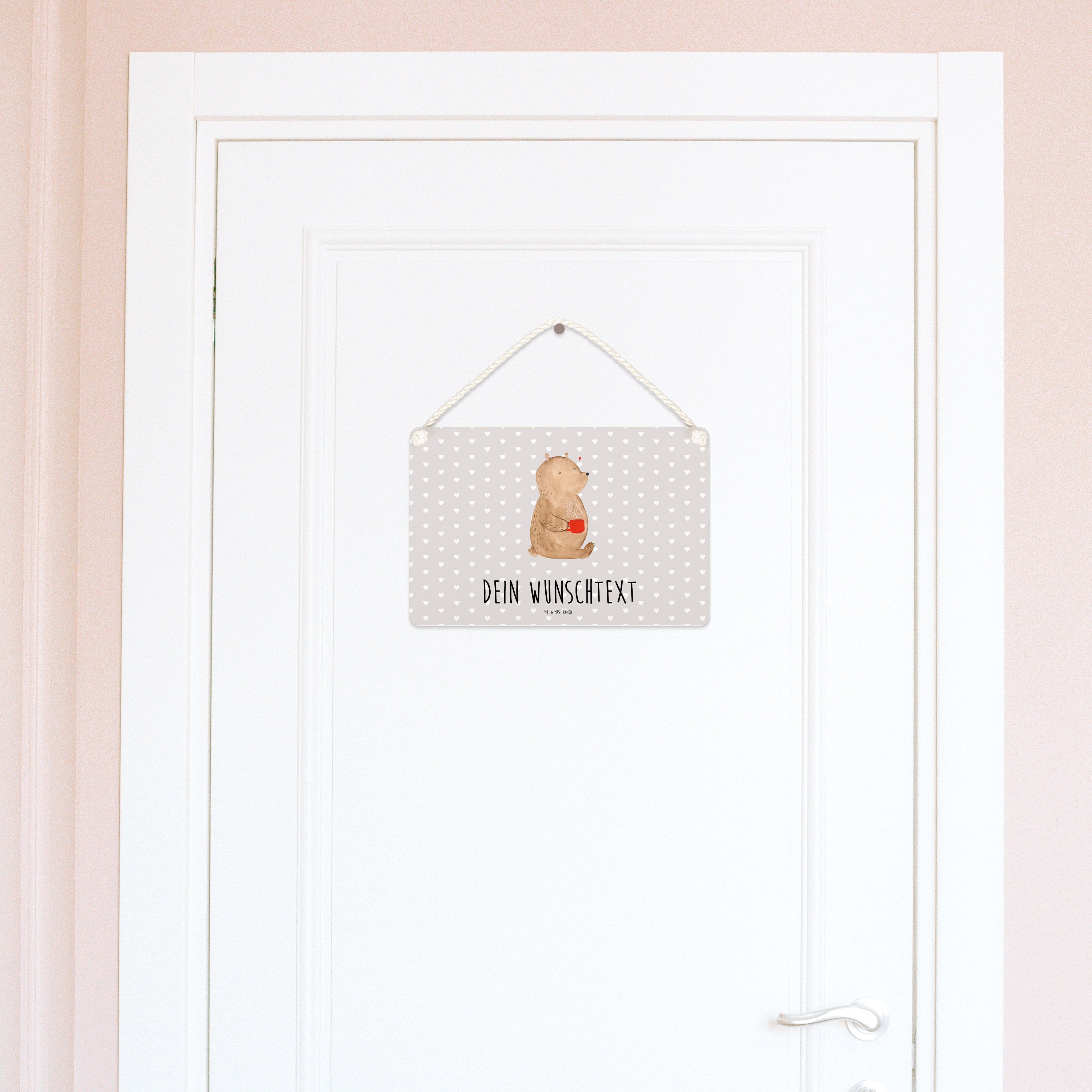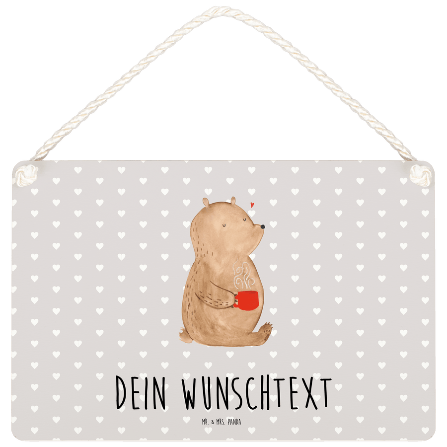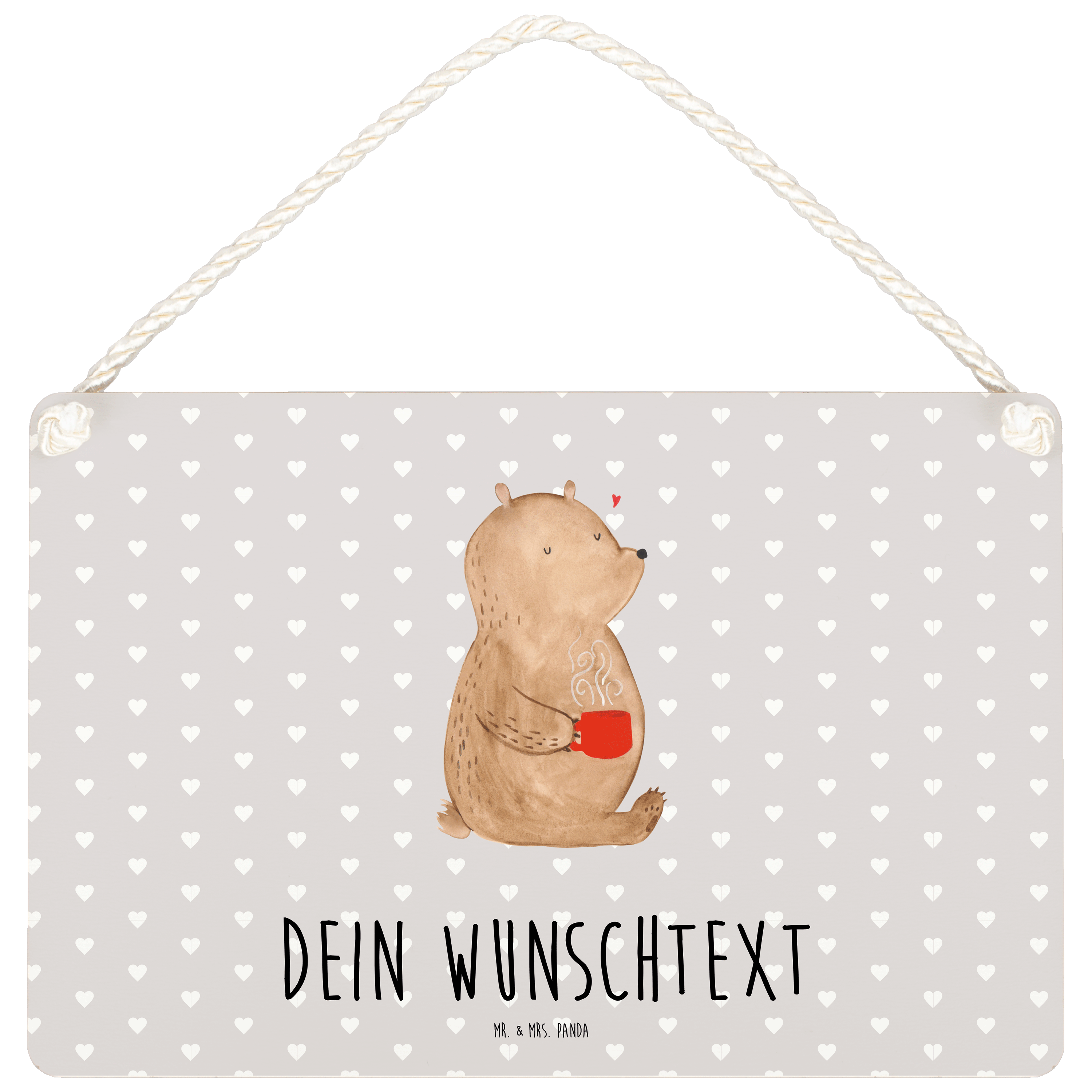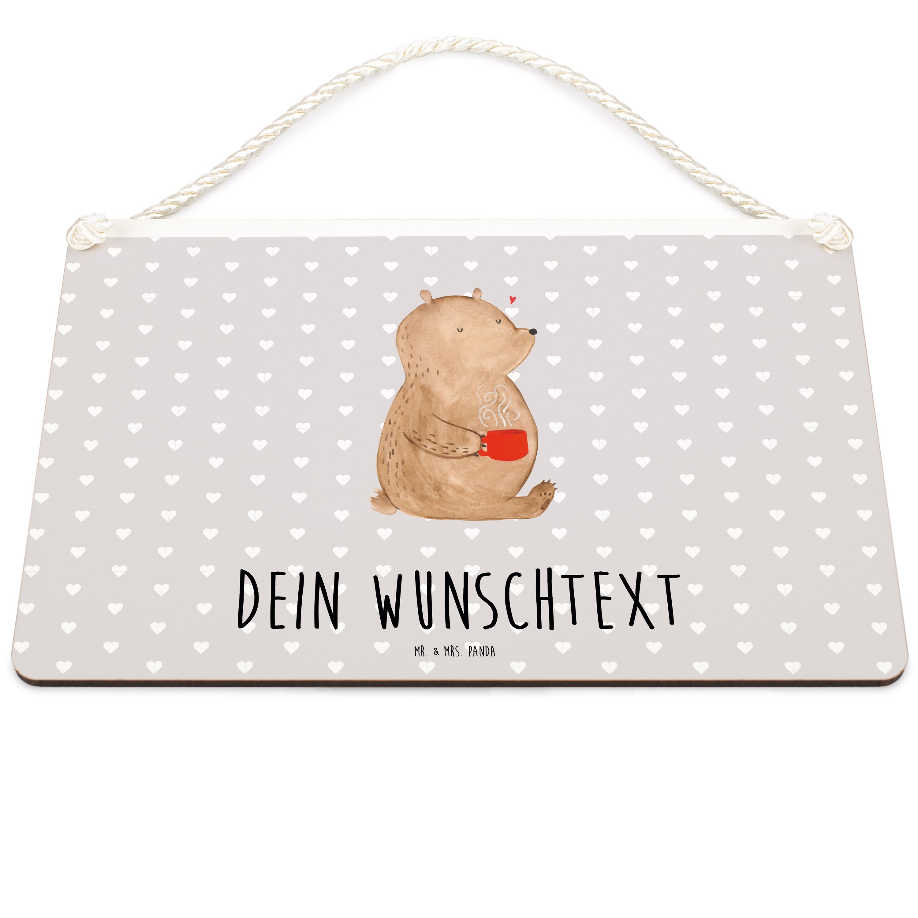 Personalisiertes Deko Schild Bär Morgenkaffee - Grau Pastell - DIN A4