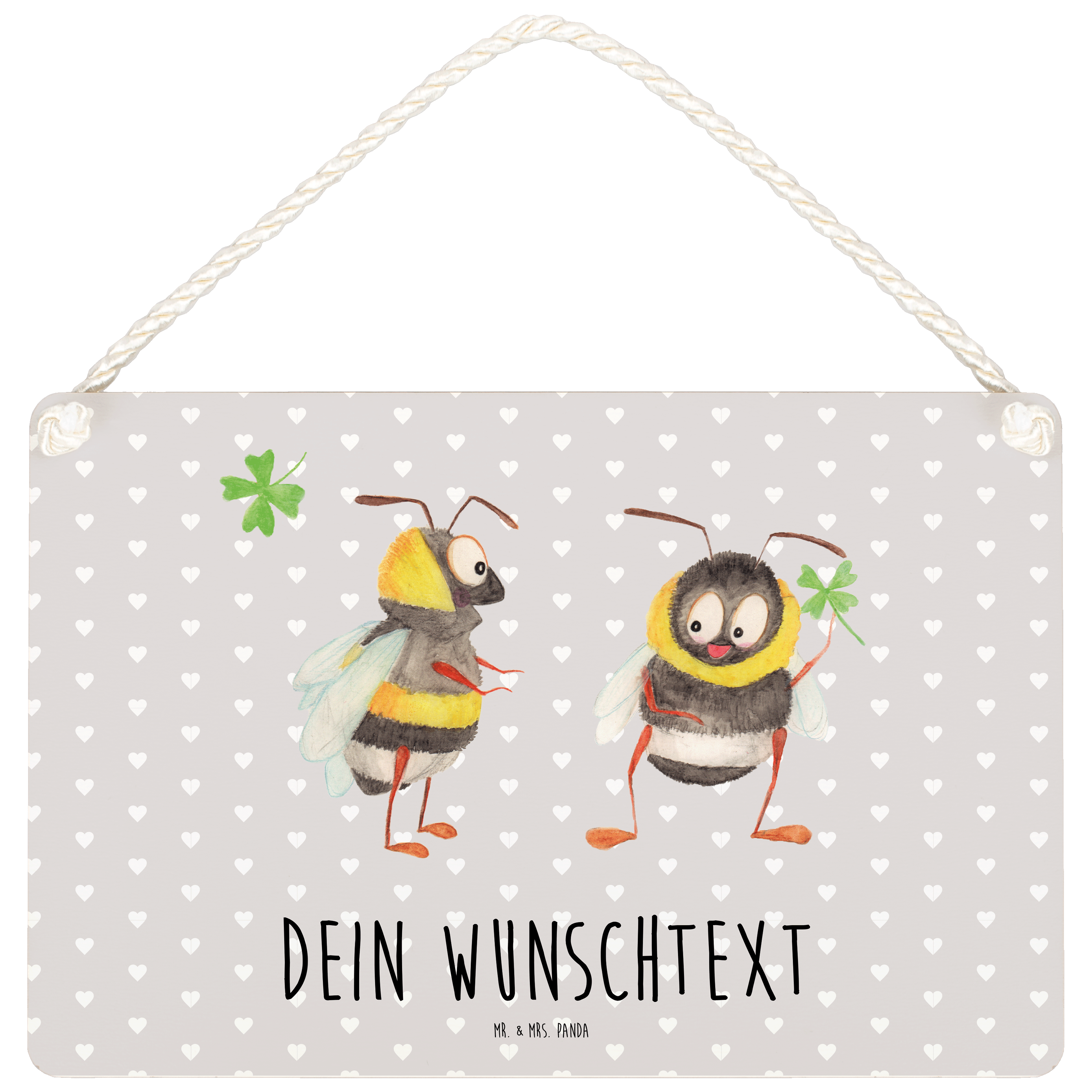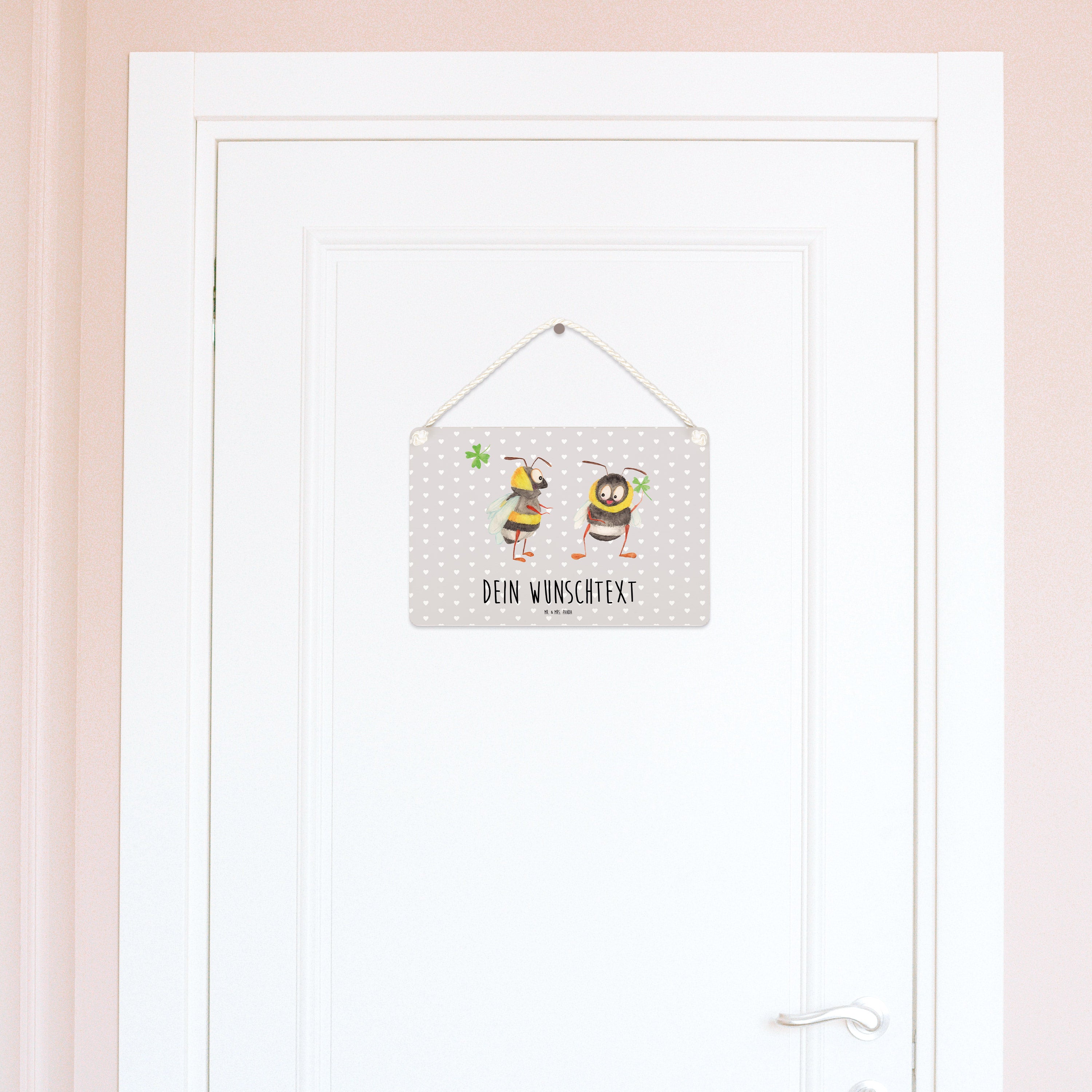 Personalisiertes Deko Schild Bienen Paar - Grau Pastell - DIN A4