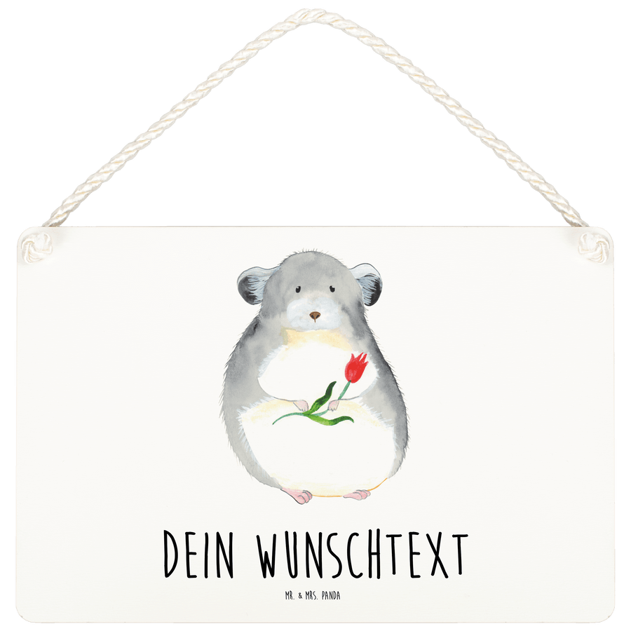 Personalisiertes Deko Schild Chinchilla mit Blume - Weiß - DIN A6