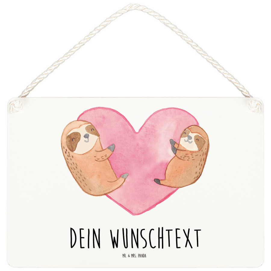 Personalisiertes Deko Schild Faultiere Herz - Weiß - DIN A6