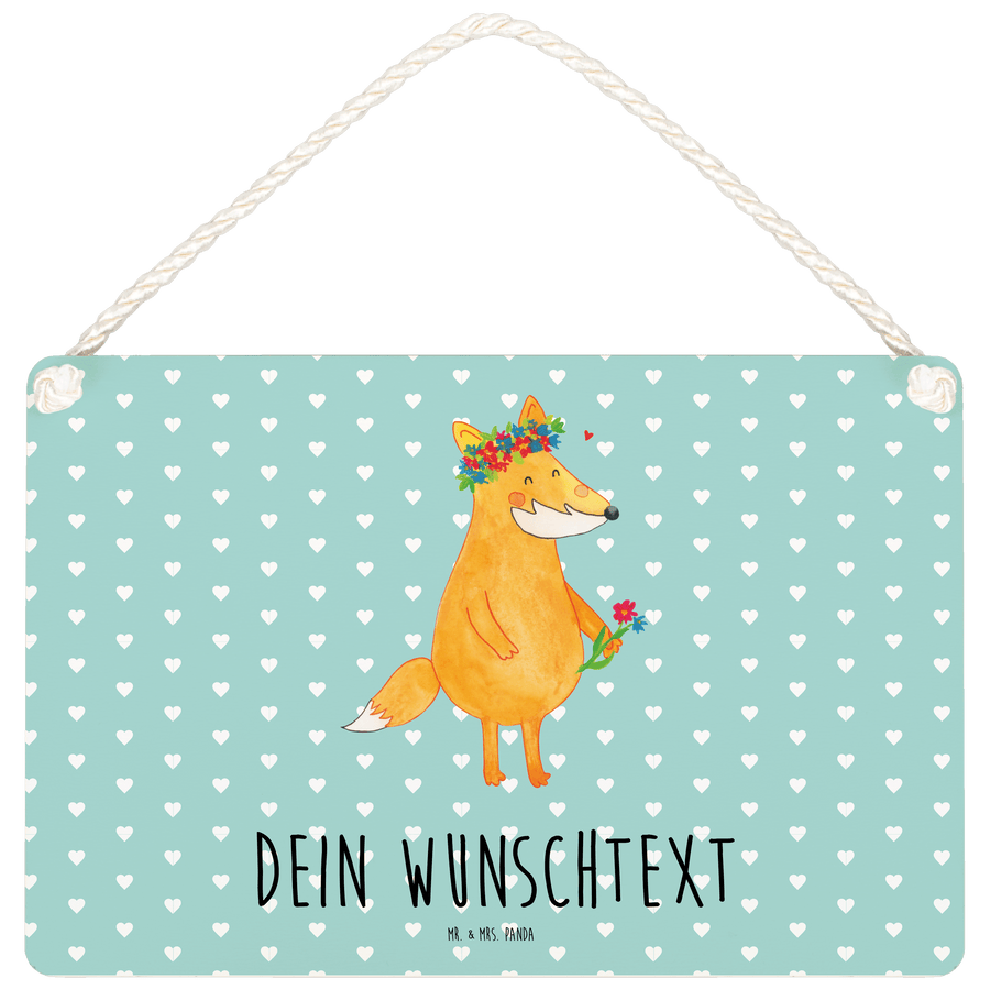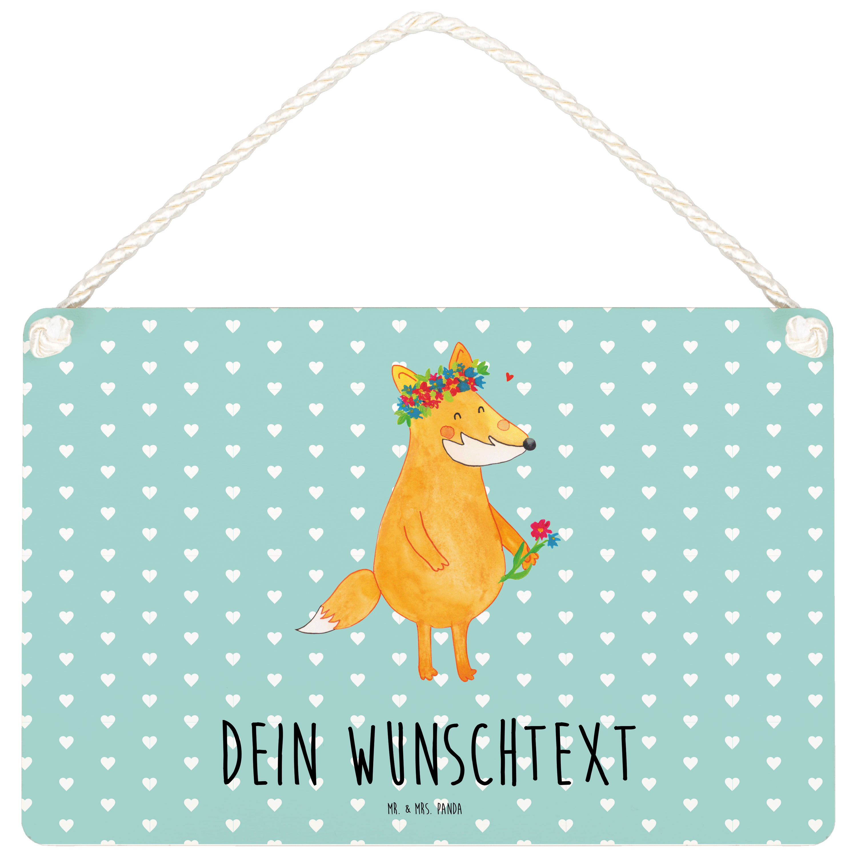 Personalisiertes Deko Schild Fuchs Blumenliebe - Türkis Pastell - DIN A4