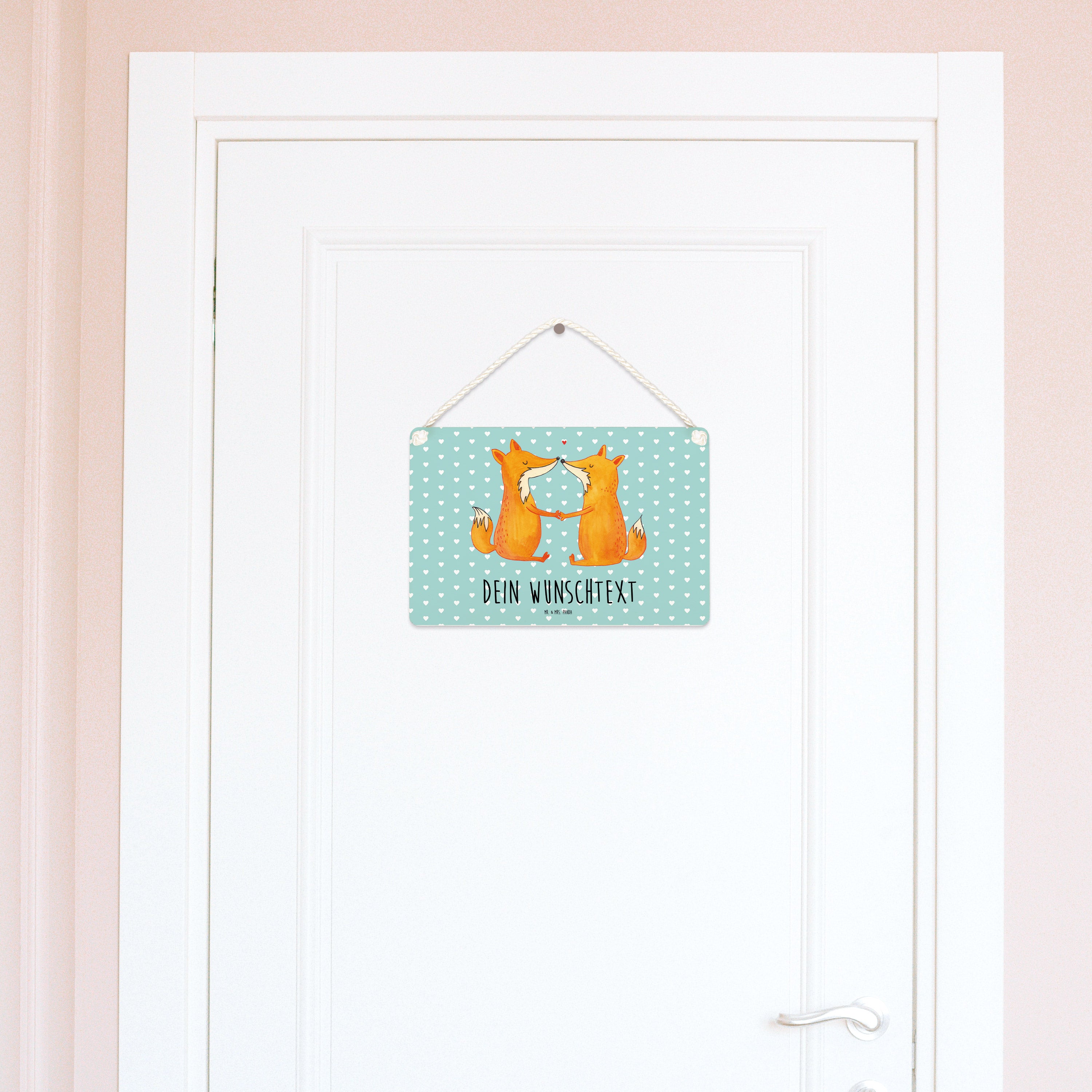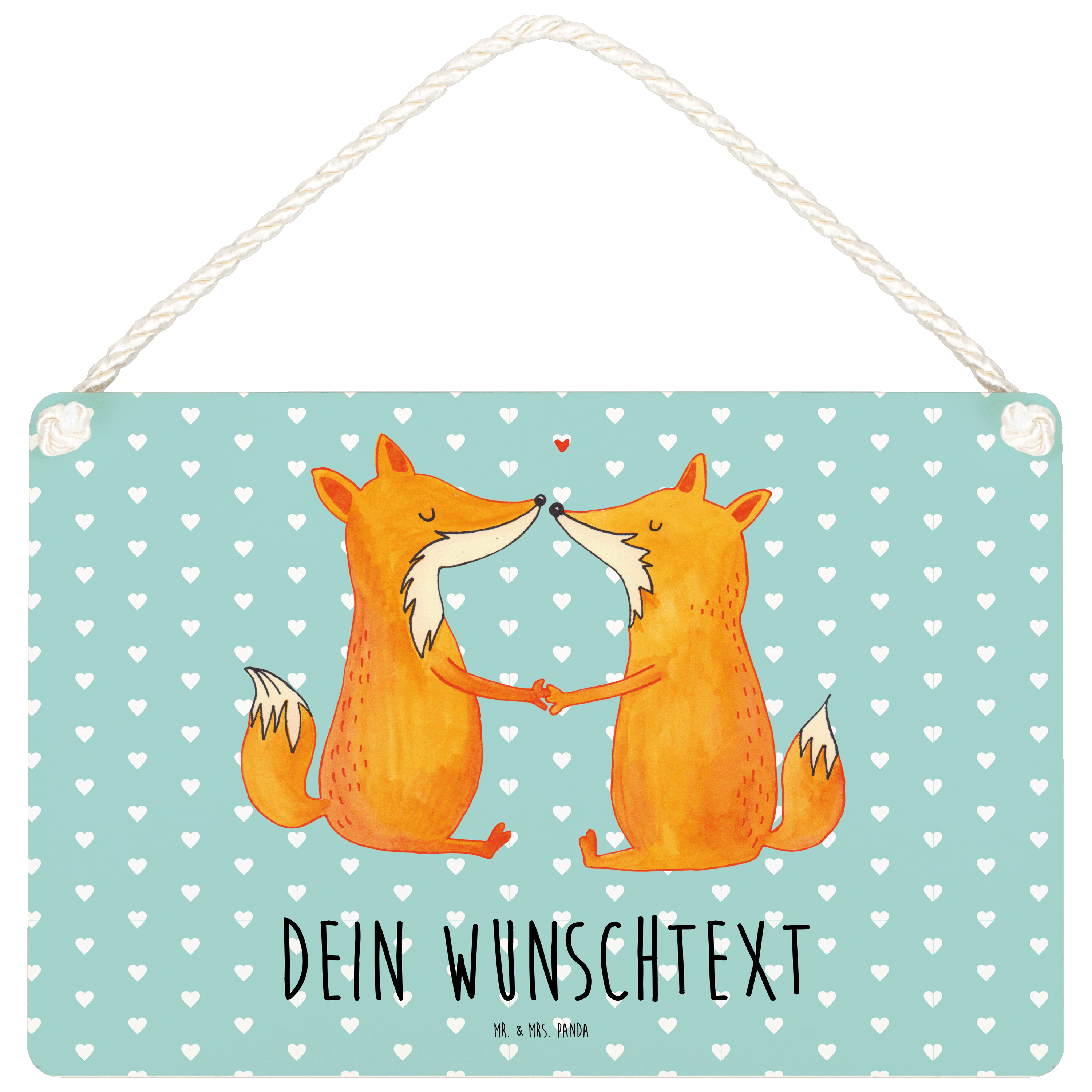 Personalisiertes Deko Schild Füchse Liebe - Türkis Pastell - DIN A4