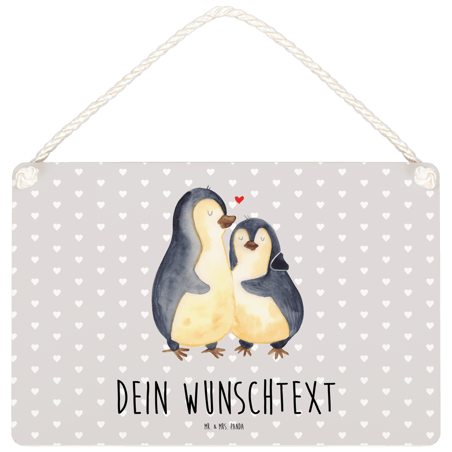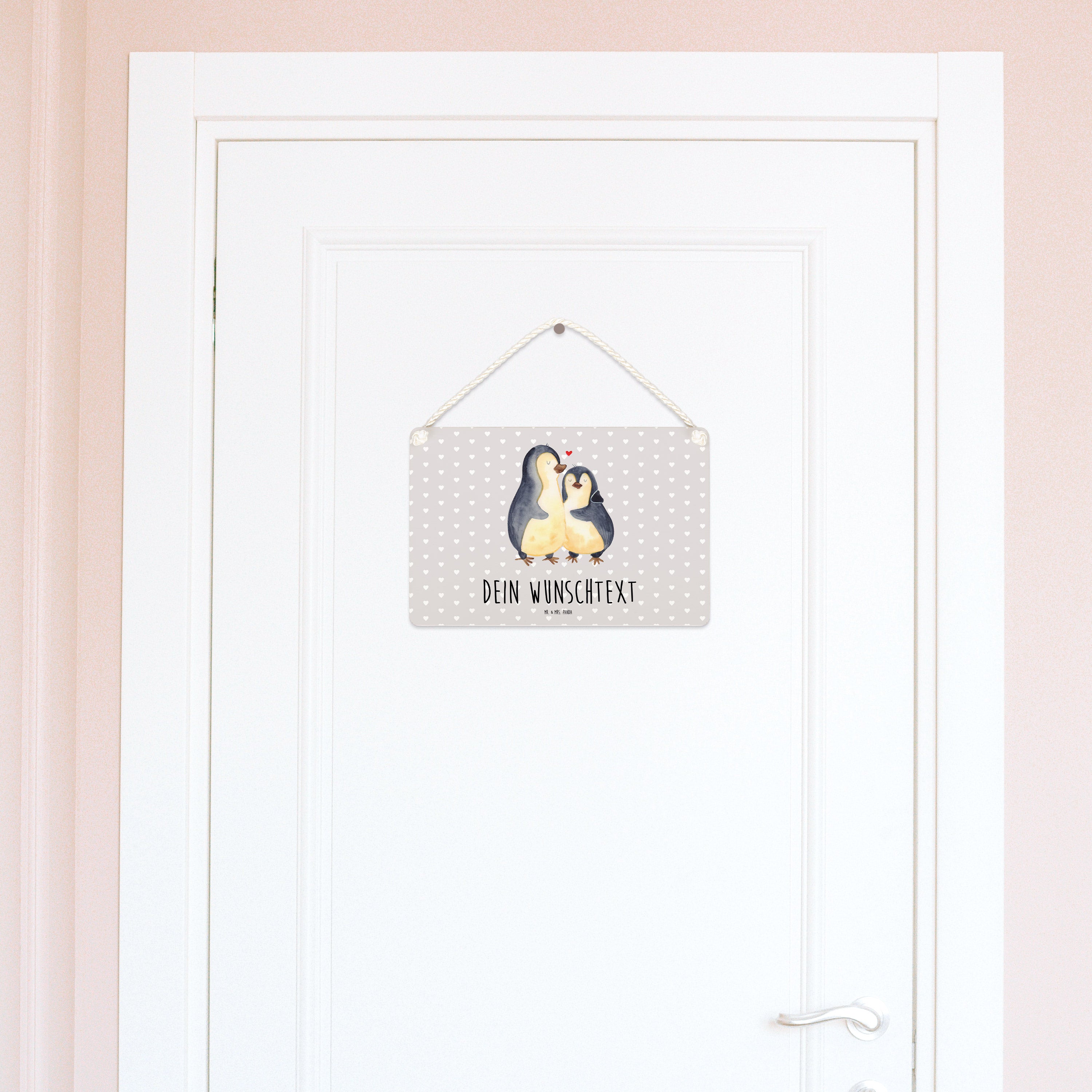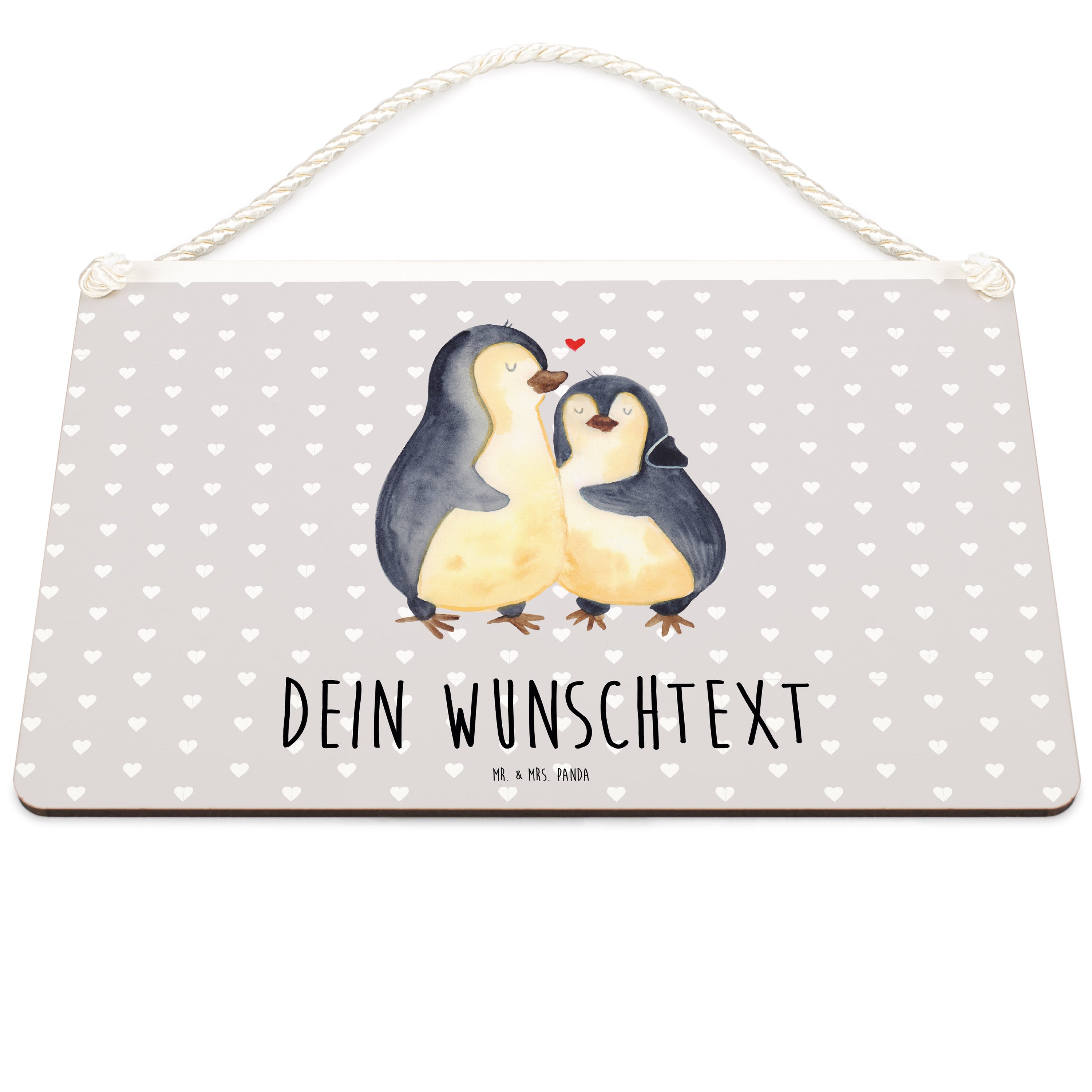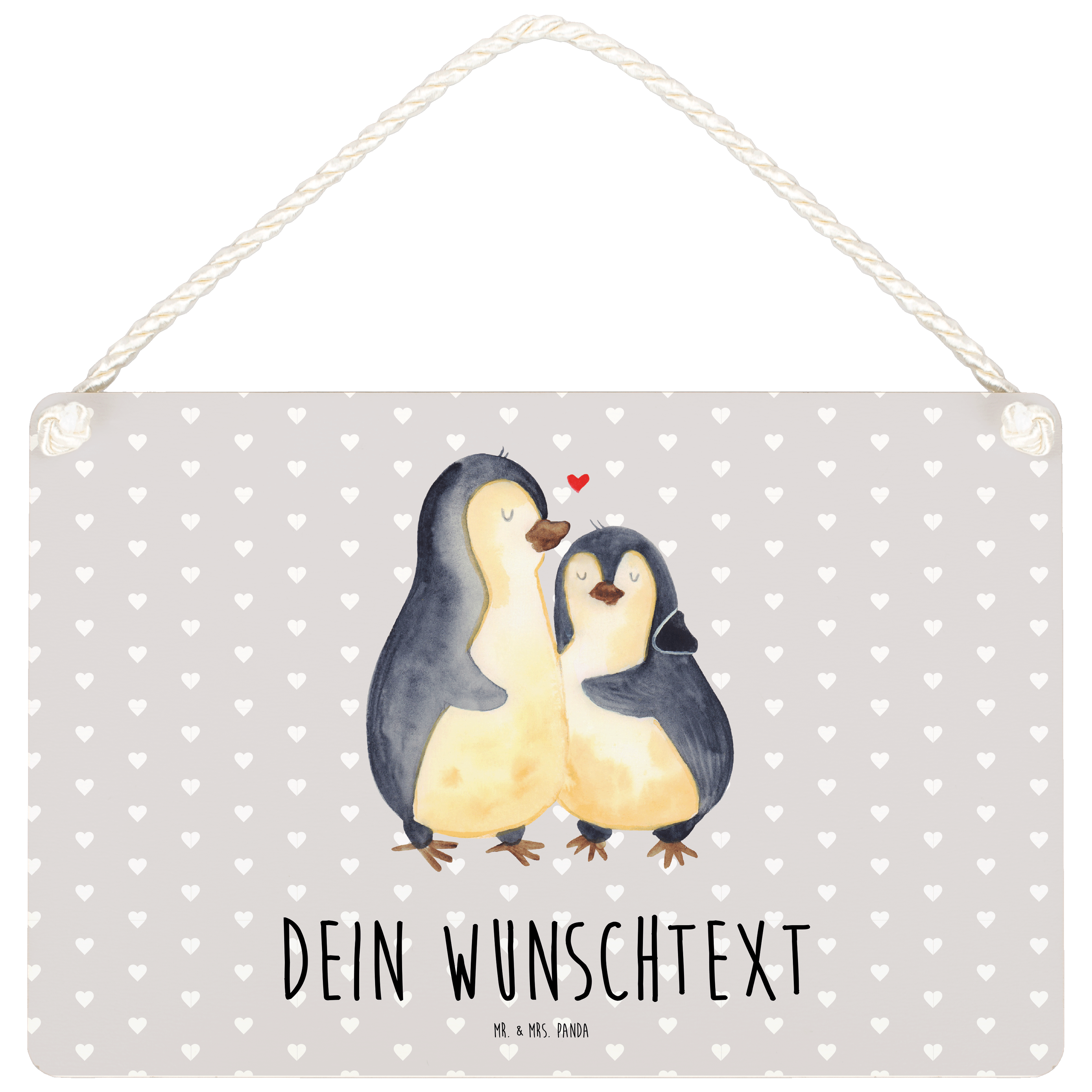 Personalisiertes Deko Schild Pinguine Einschlafen - Grau Pastell - DIN A4