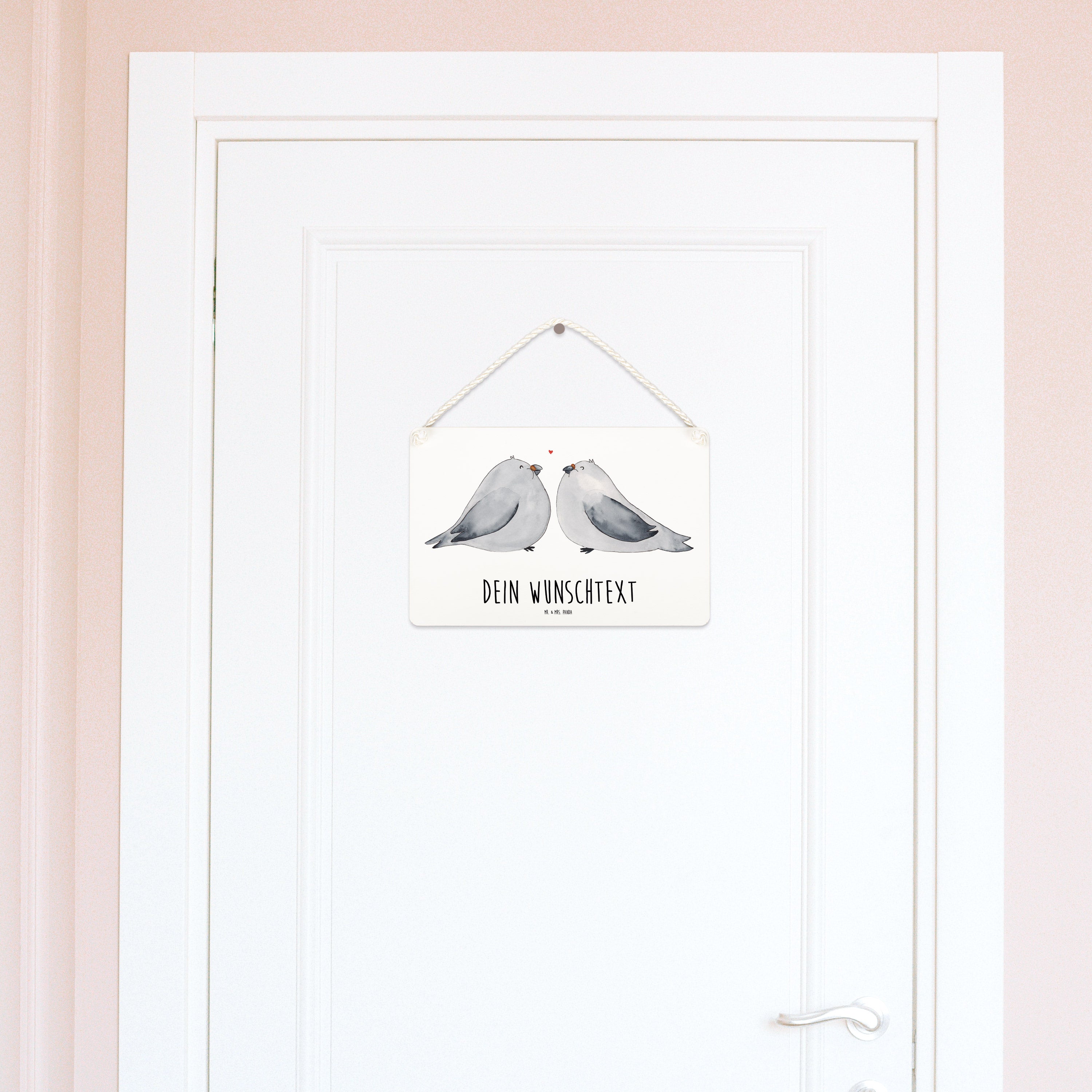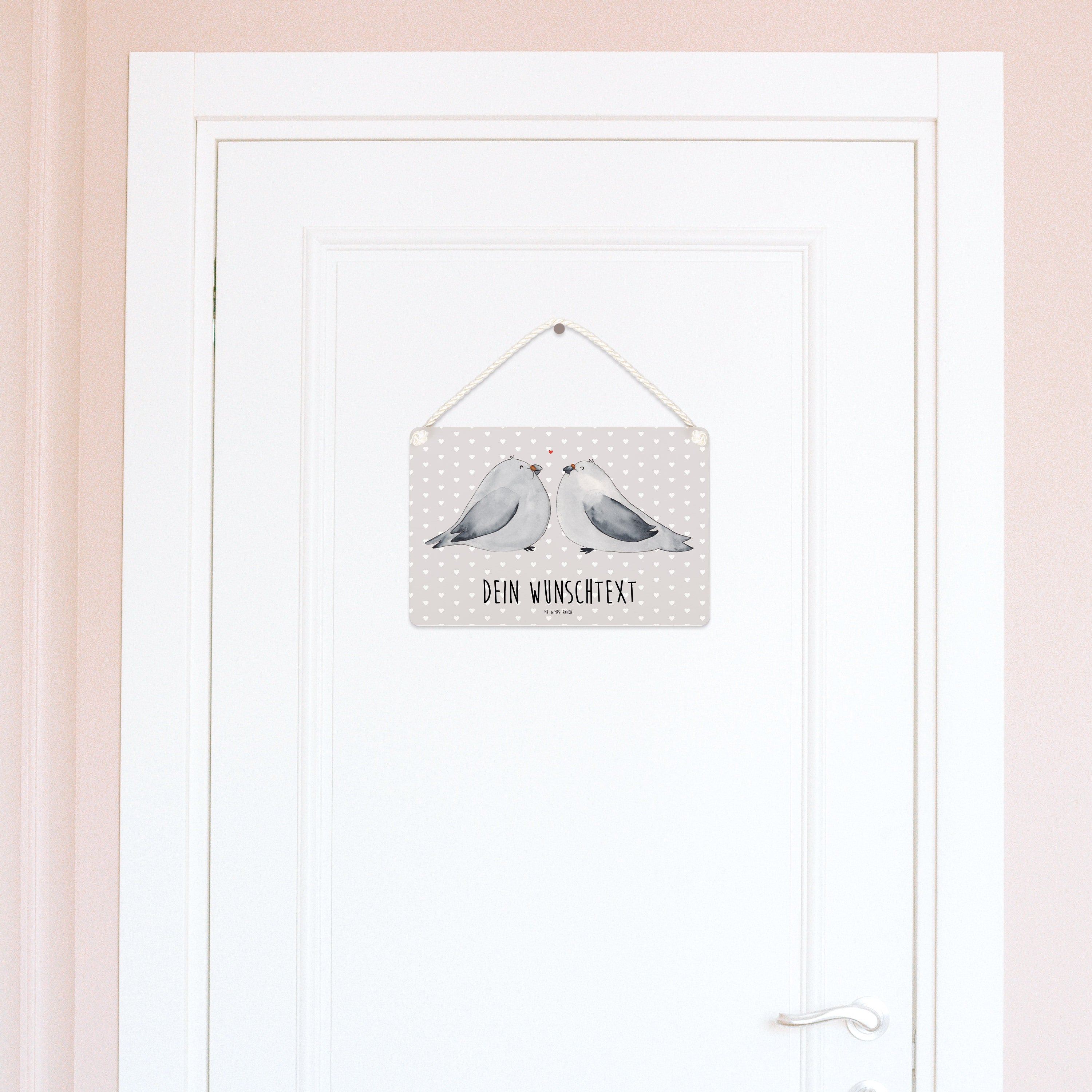 Personalisiertes Deko Schild Turteltauben Liebe - Weiß - DIN A5