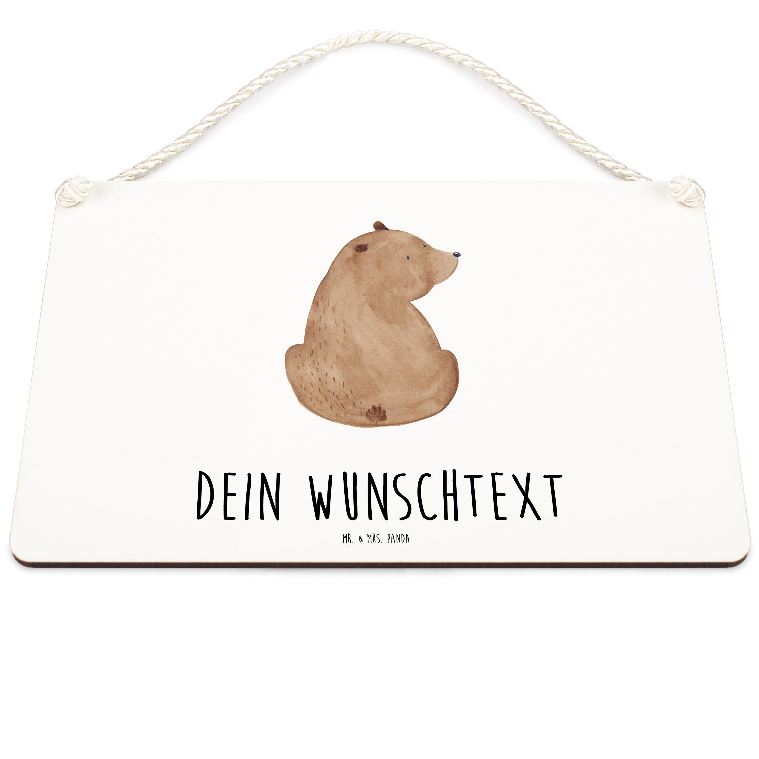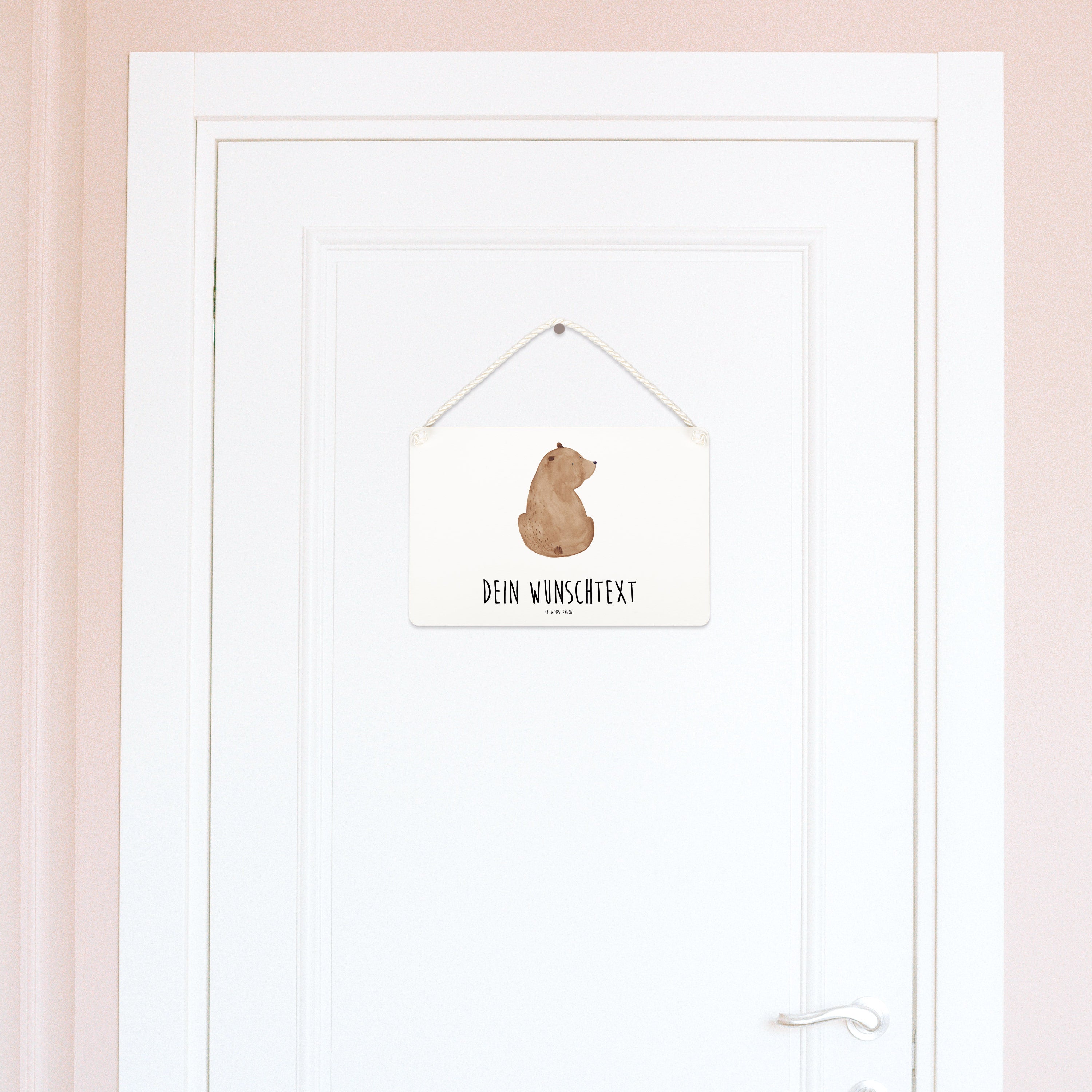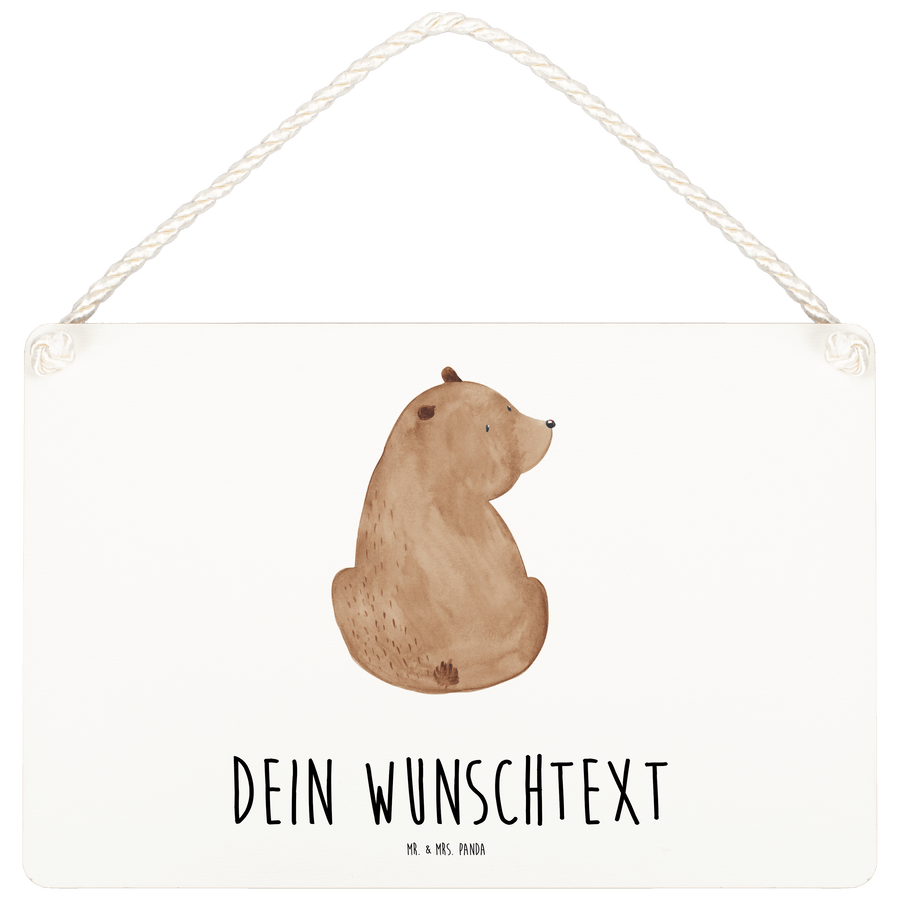 Personalisiertes Deko Schild Bär Schulterblick - DIN A6 - Weiß